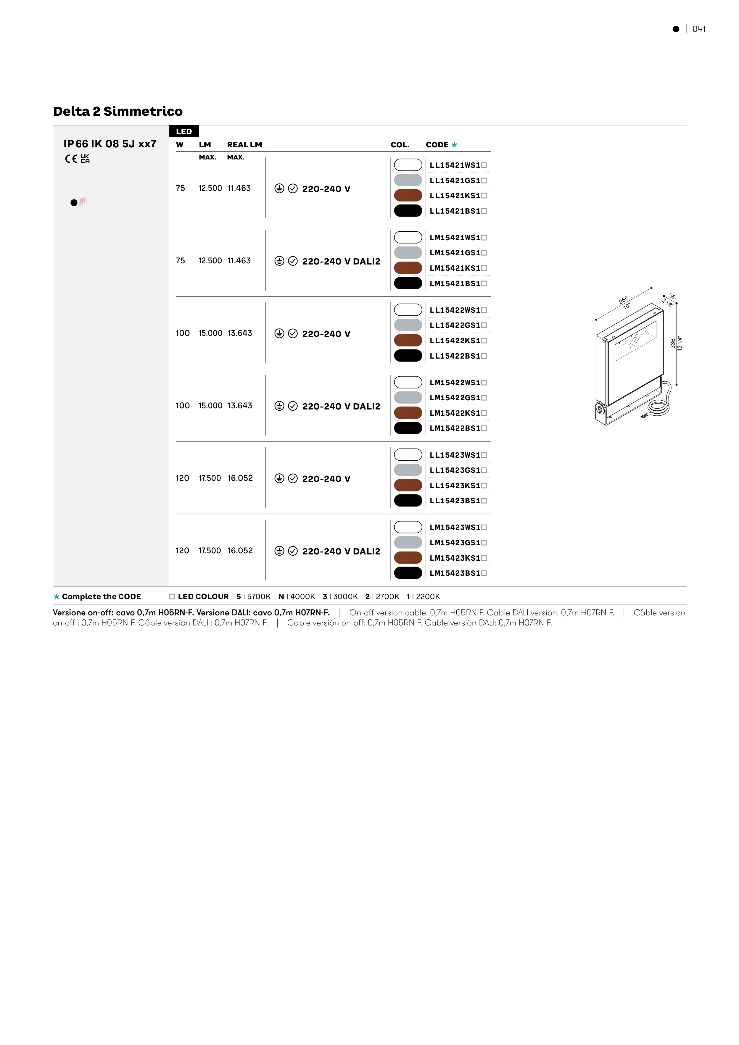 Versione on-off: cavo 0,7m H05RN-F. Versione DALI: cavo 0,7m H07RN-F. | On-off version cable: 0,7m H05RN-F. Cable DALI version: 0,7m H07RN-F. | Câble version