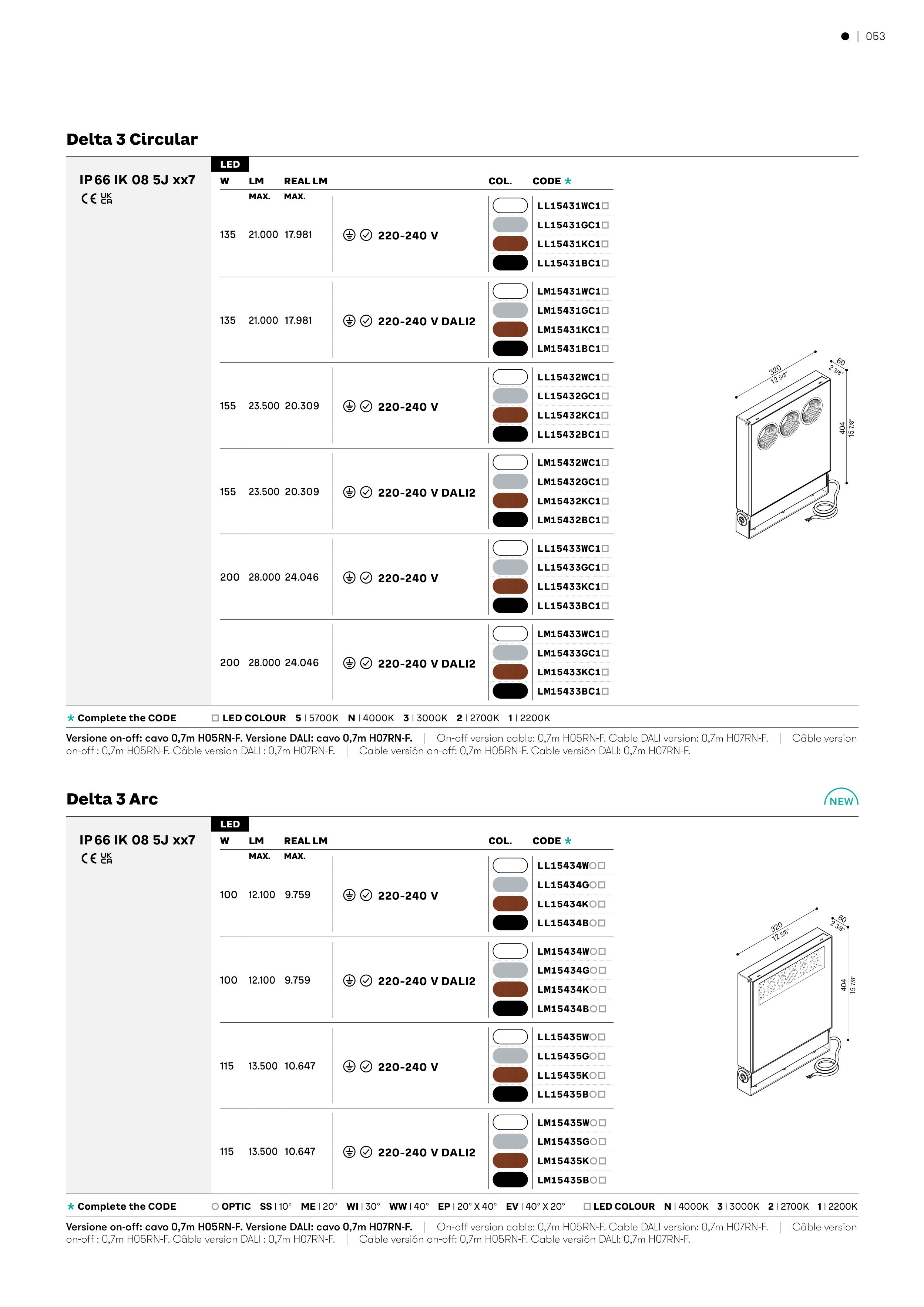 È OPTIC SS | 10° ME | 20° WI | 30° WW | 40° EP | 20° X 40° EV | 40° X 20° Ä LED COLOUR N | 4000K 3 | 3000K 2 | 2700K 1 | 2200K