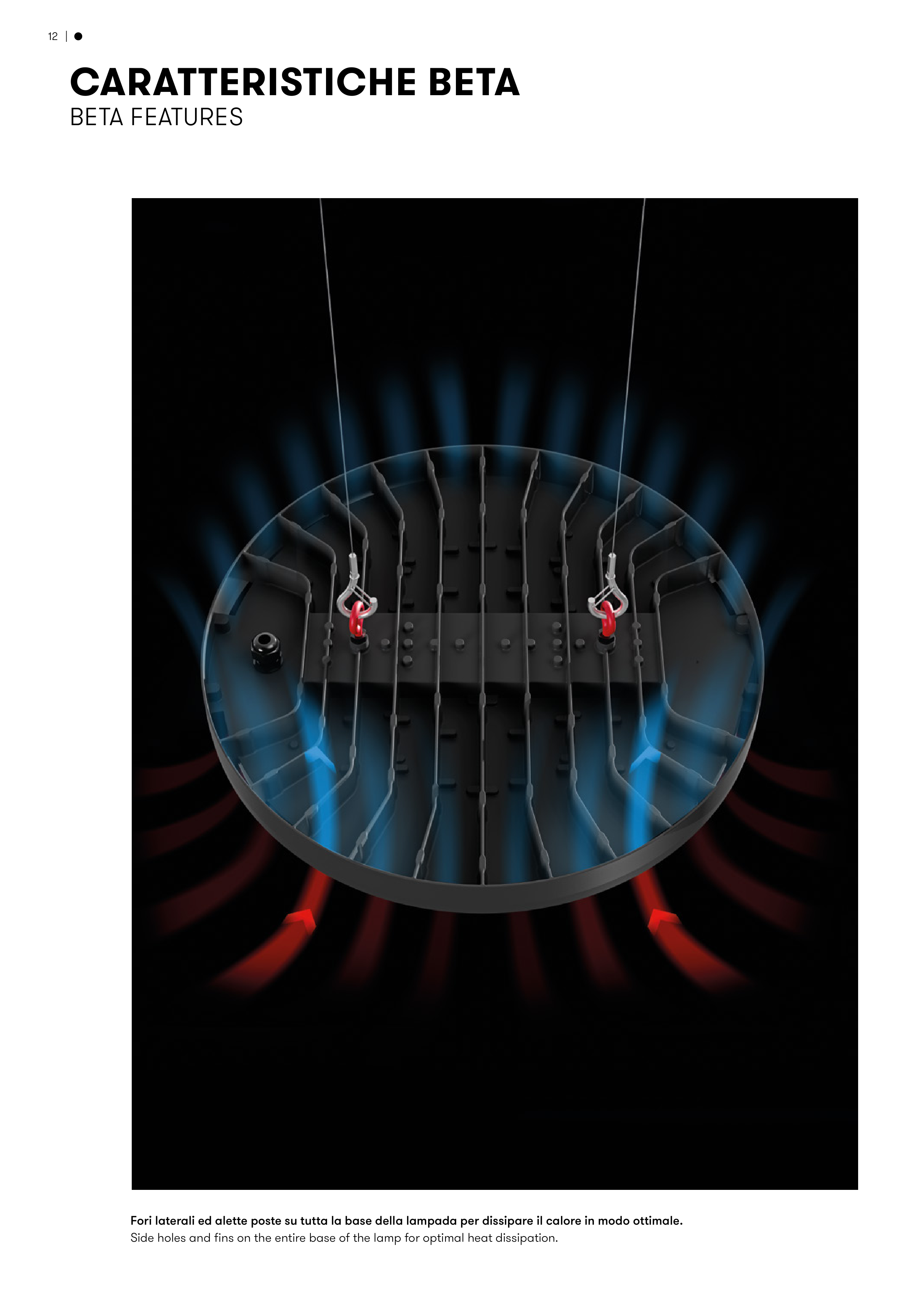 Fori laterali ed alette poste su tutta la base della lampada per dissipare il calore in modo ottimale.