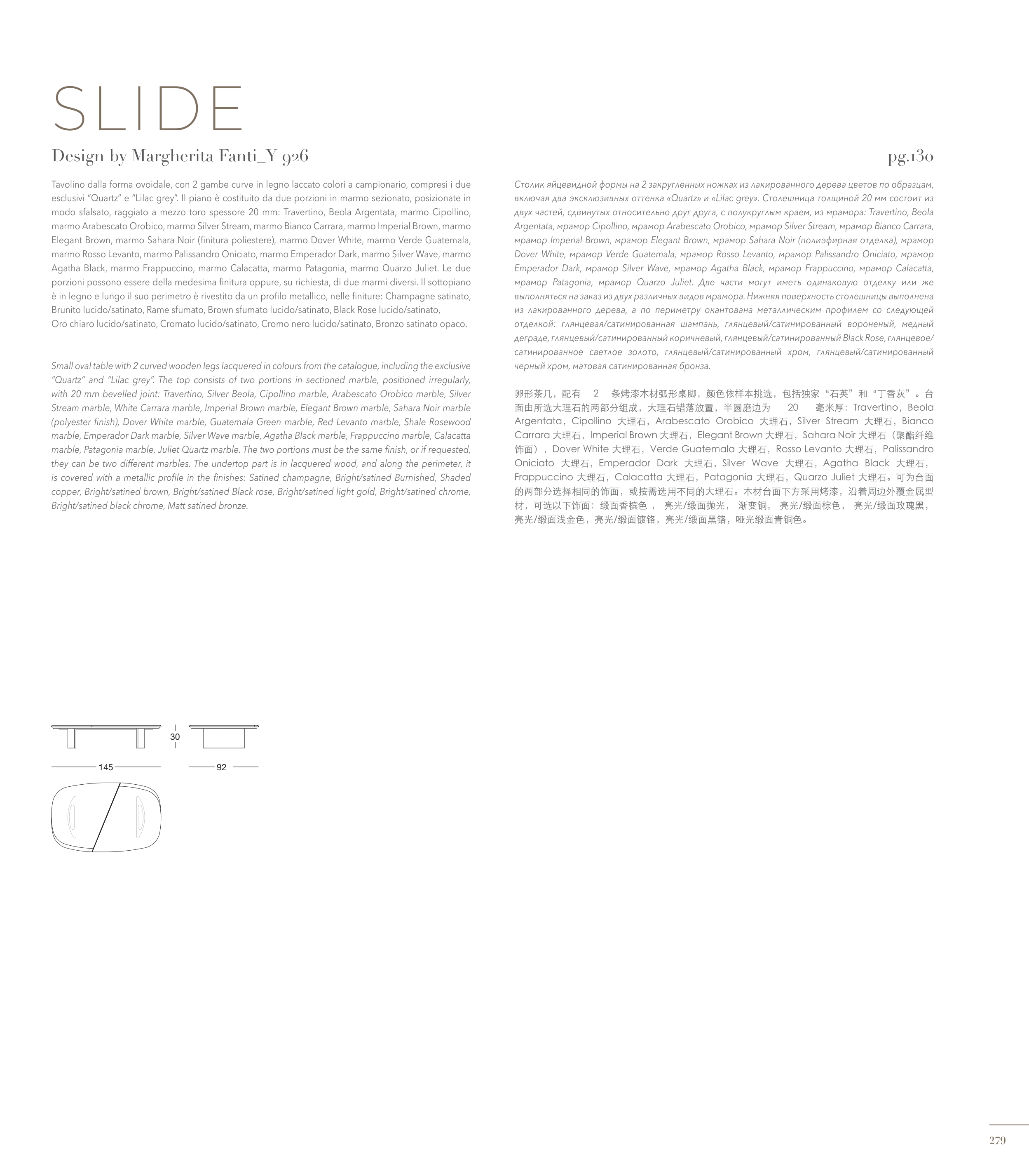 “Quartz” and “Lilac grey”. The top consists of two portions in sectioned marble, positioned irregularly,