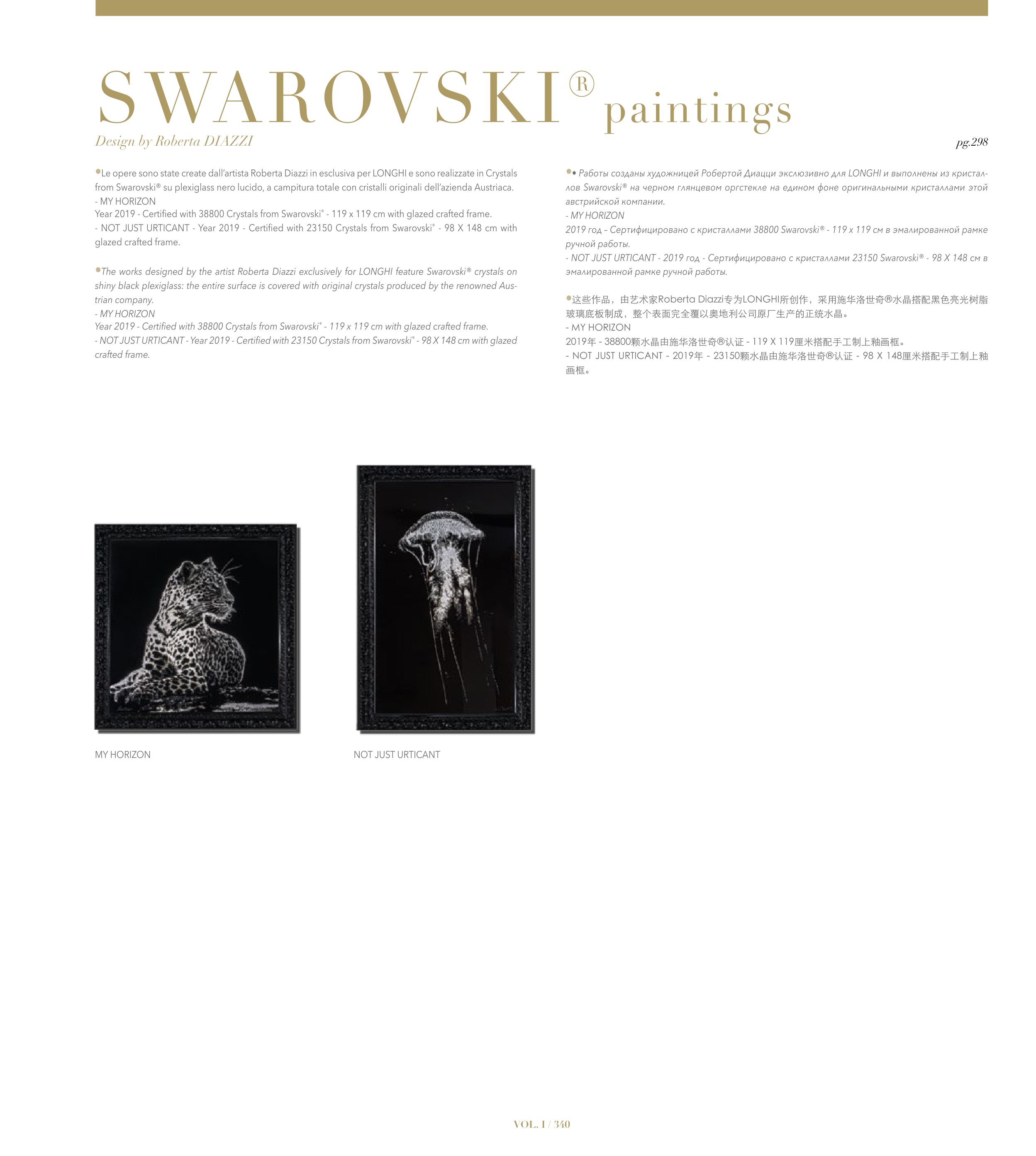 •Le opere sono state create dall’artista Roberta Diazzi in esclusiva per LONGHI e sono realizzate in Crystals