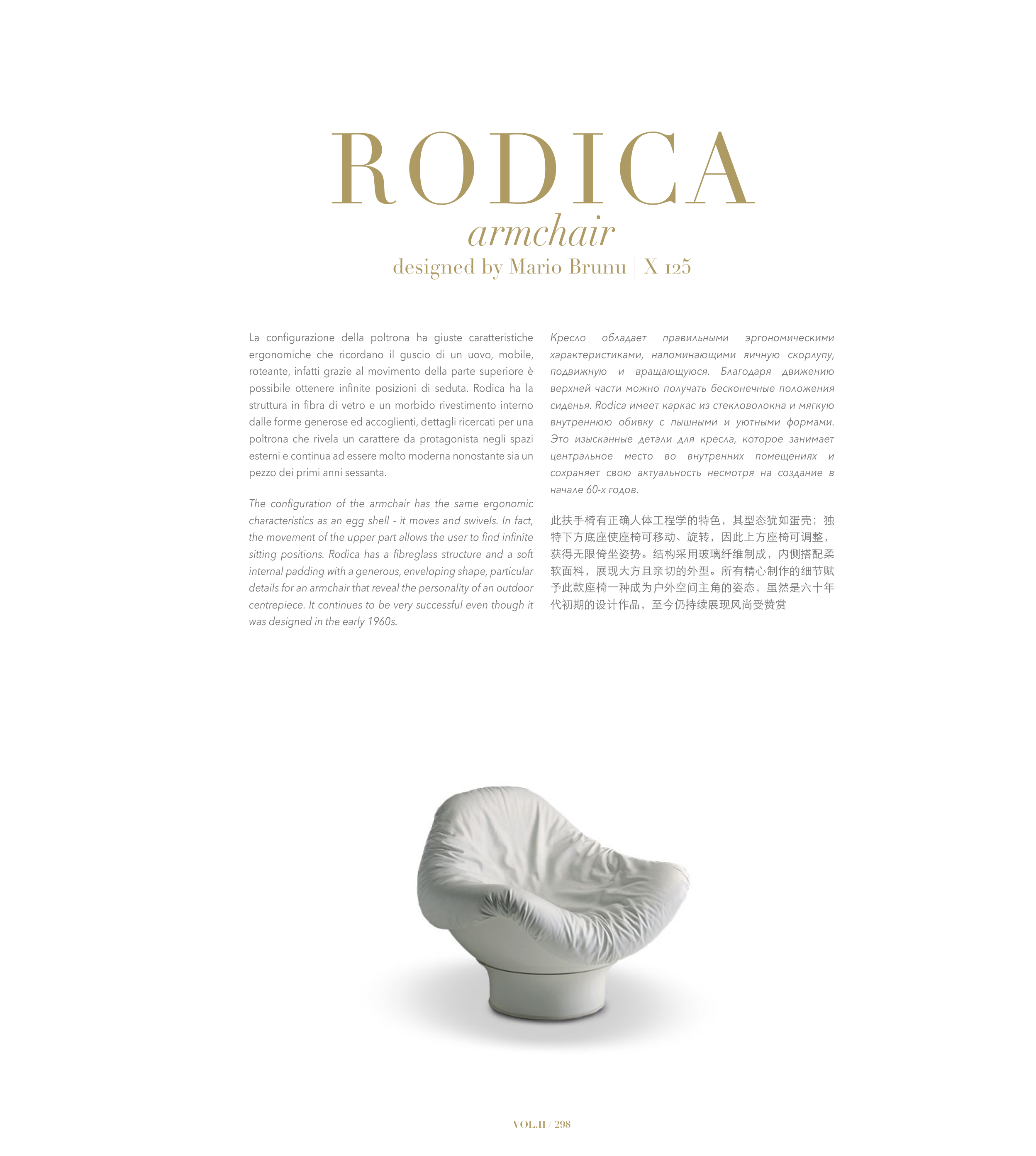 sitting positions. Rodica has a fibreglass structure and a soft