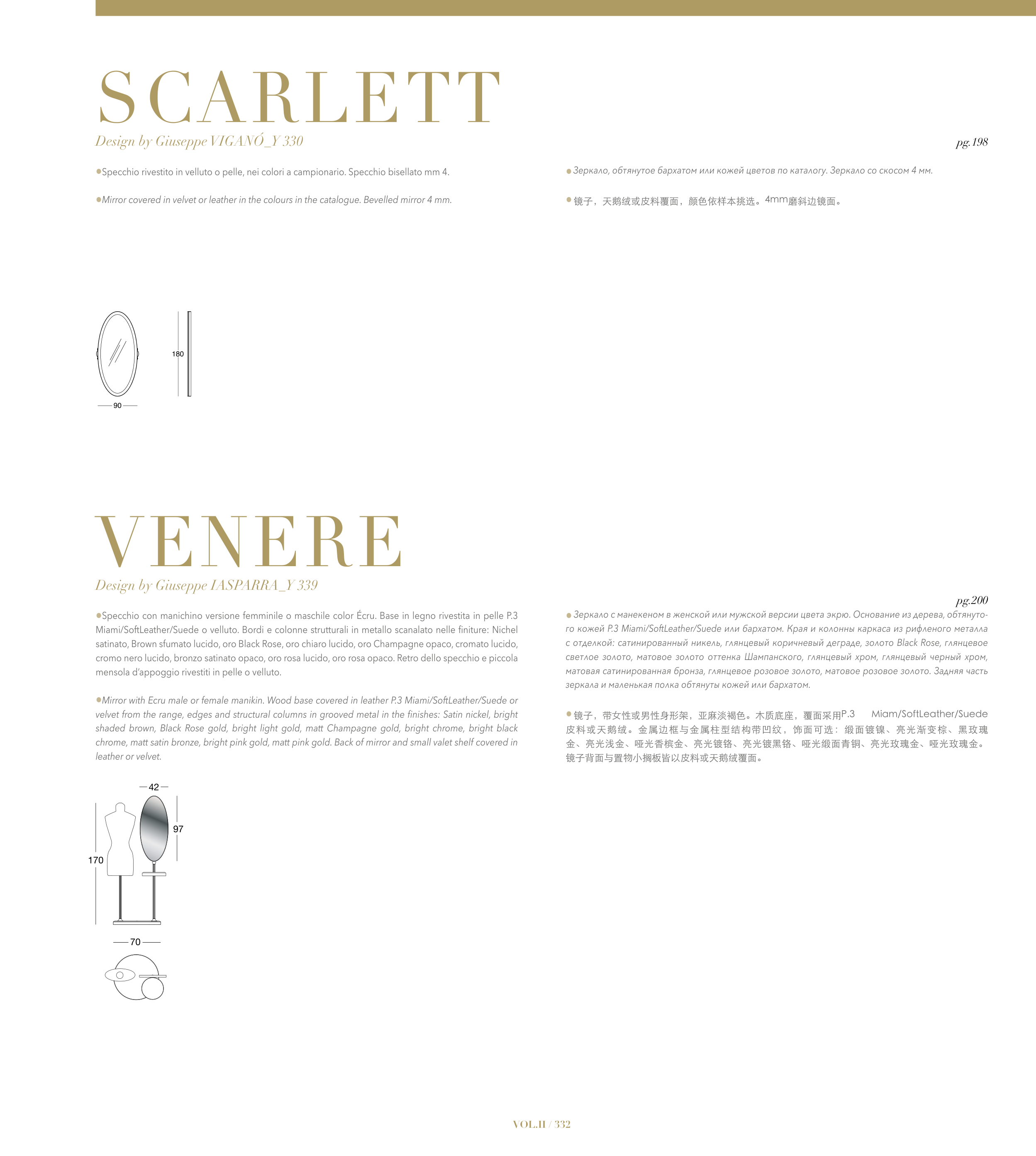 •Mirror covered in velvet or leather in the colours in the catalogue. Bevelled mirror 4 mm.