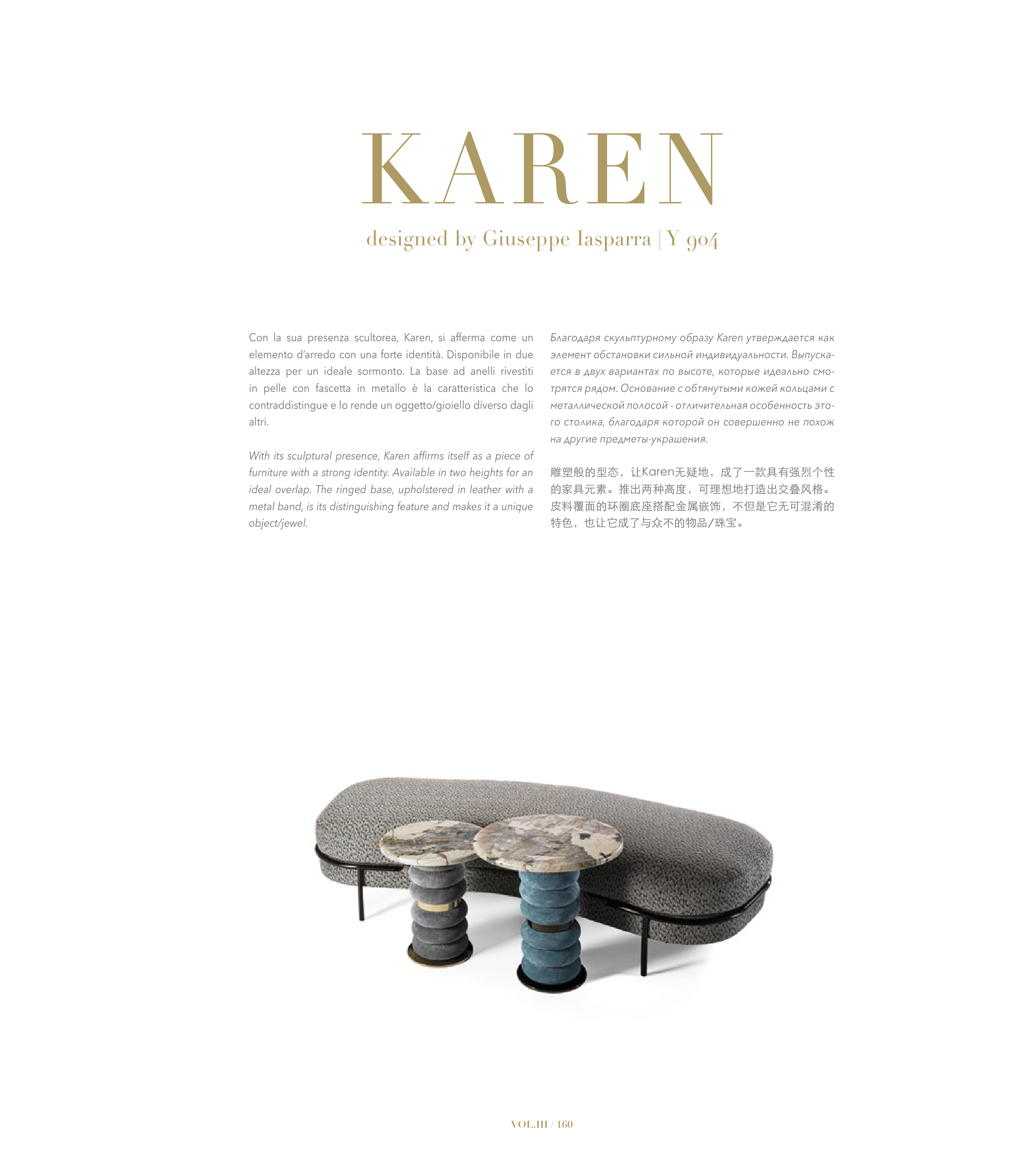 With its sculptural presence, Karen affirms itself as a piece of