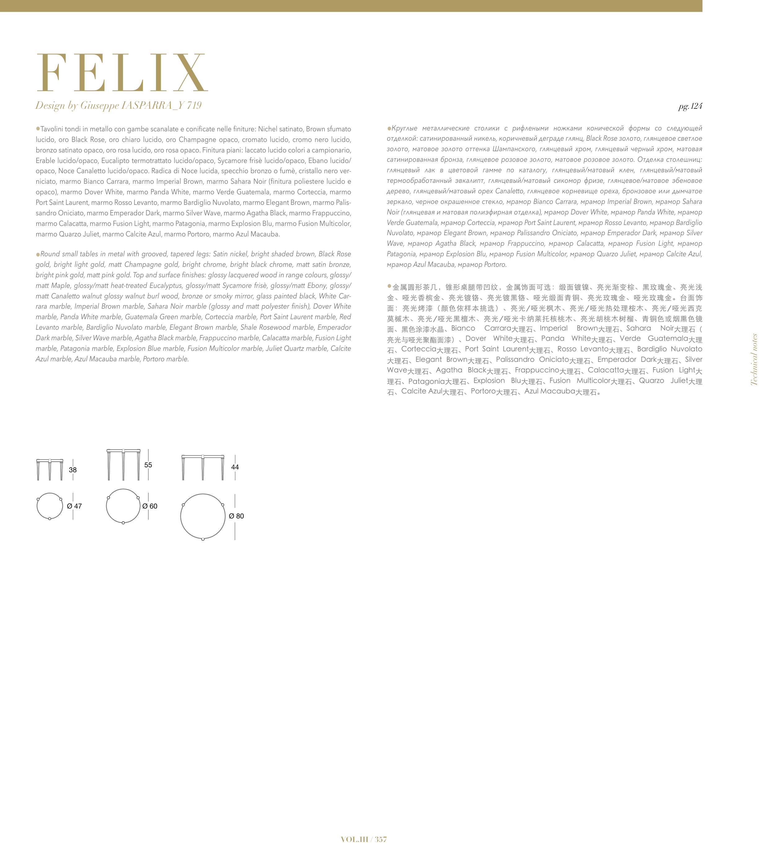 •金属圆形茶几,锥形桌腿带凹纹,金属饰面可选:缎面镀镍、亮光渐变棕、黑玫瑰金、亮光浅