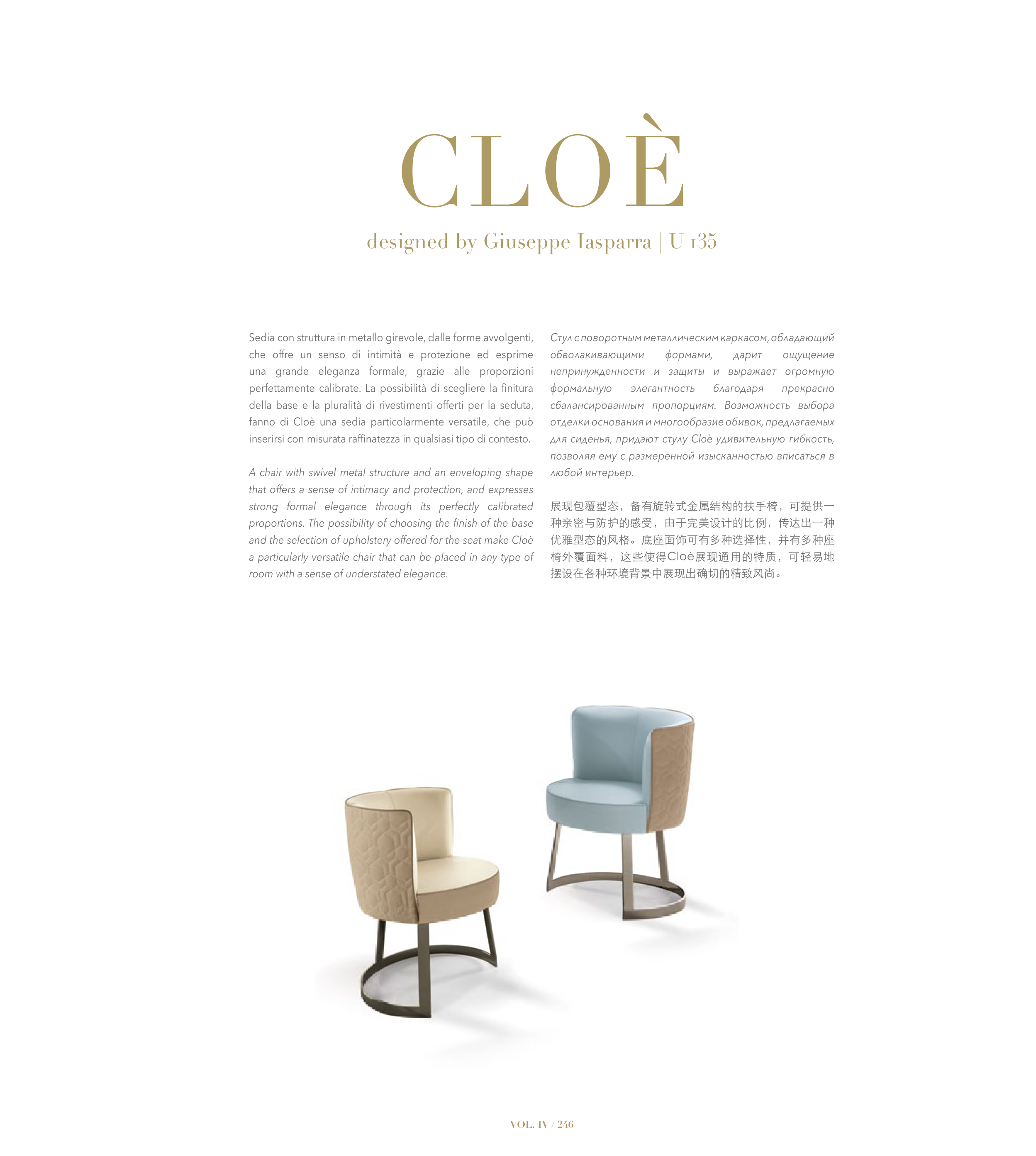椅外覆面料,这些使得Cloè展现通用的特质,可轻易地