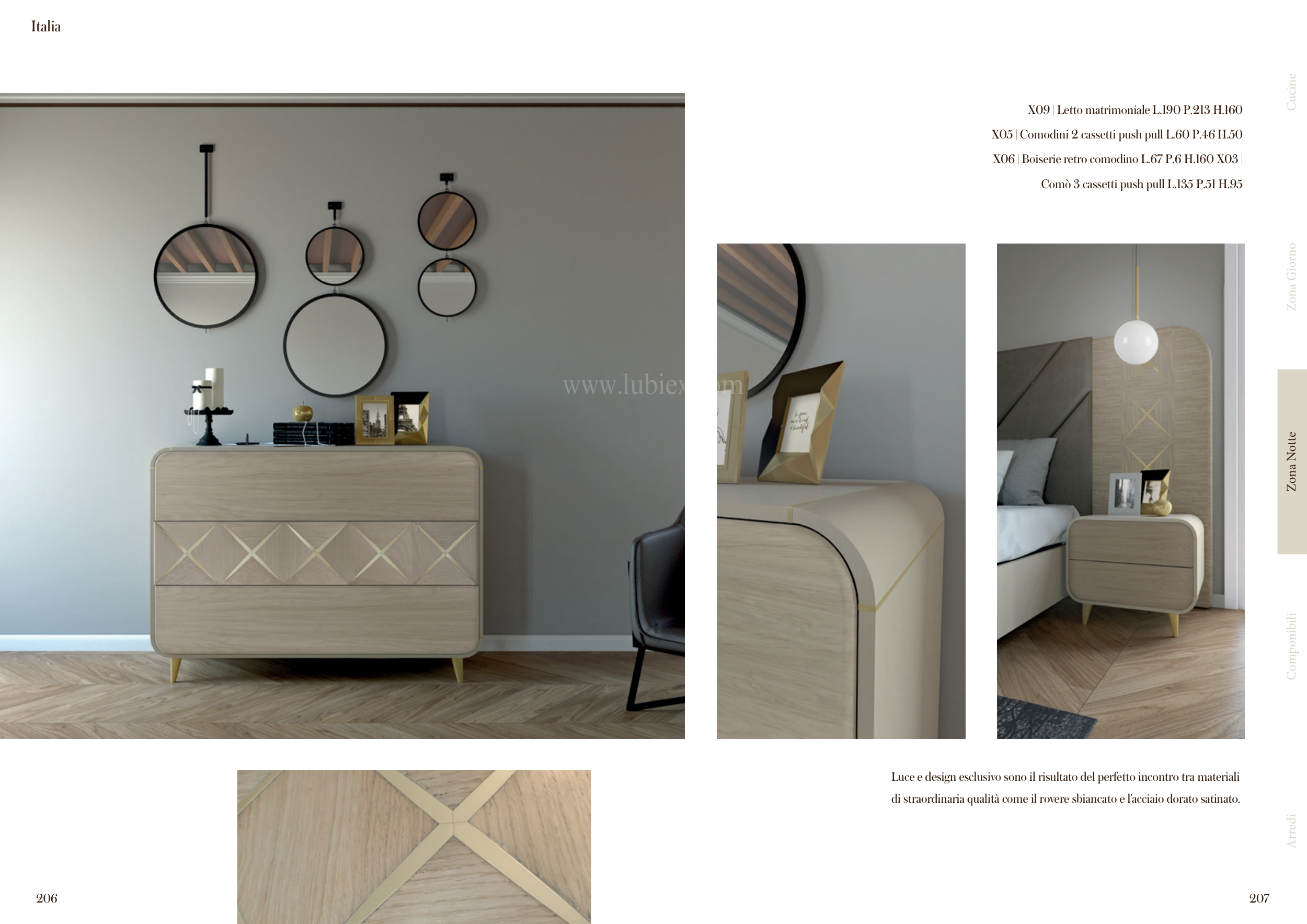 di straordinaria qualità come il rovere sbiancato e l’acciaio dorato satinato.