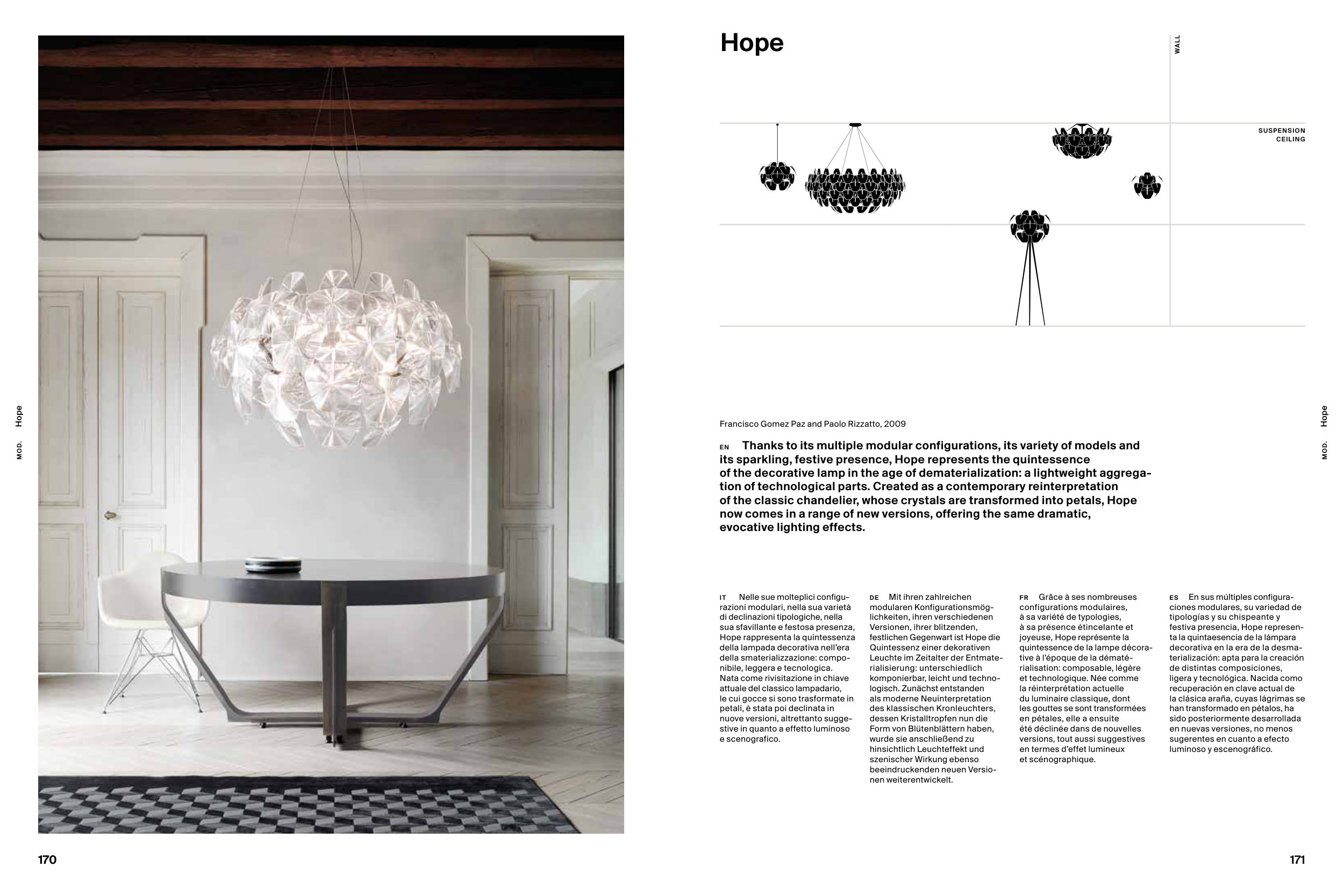 of the classic chandelier, whose crystals are transformed into petals, Hope