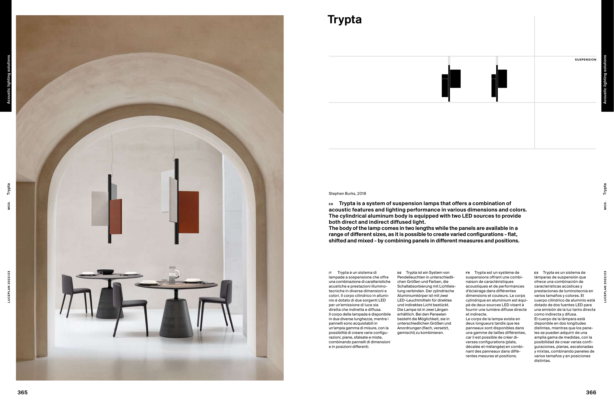 Trypta is a system of suspension lamps that offers a combination of
