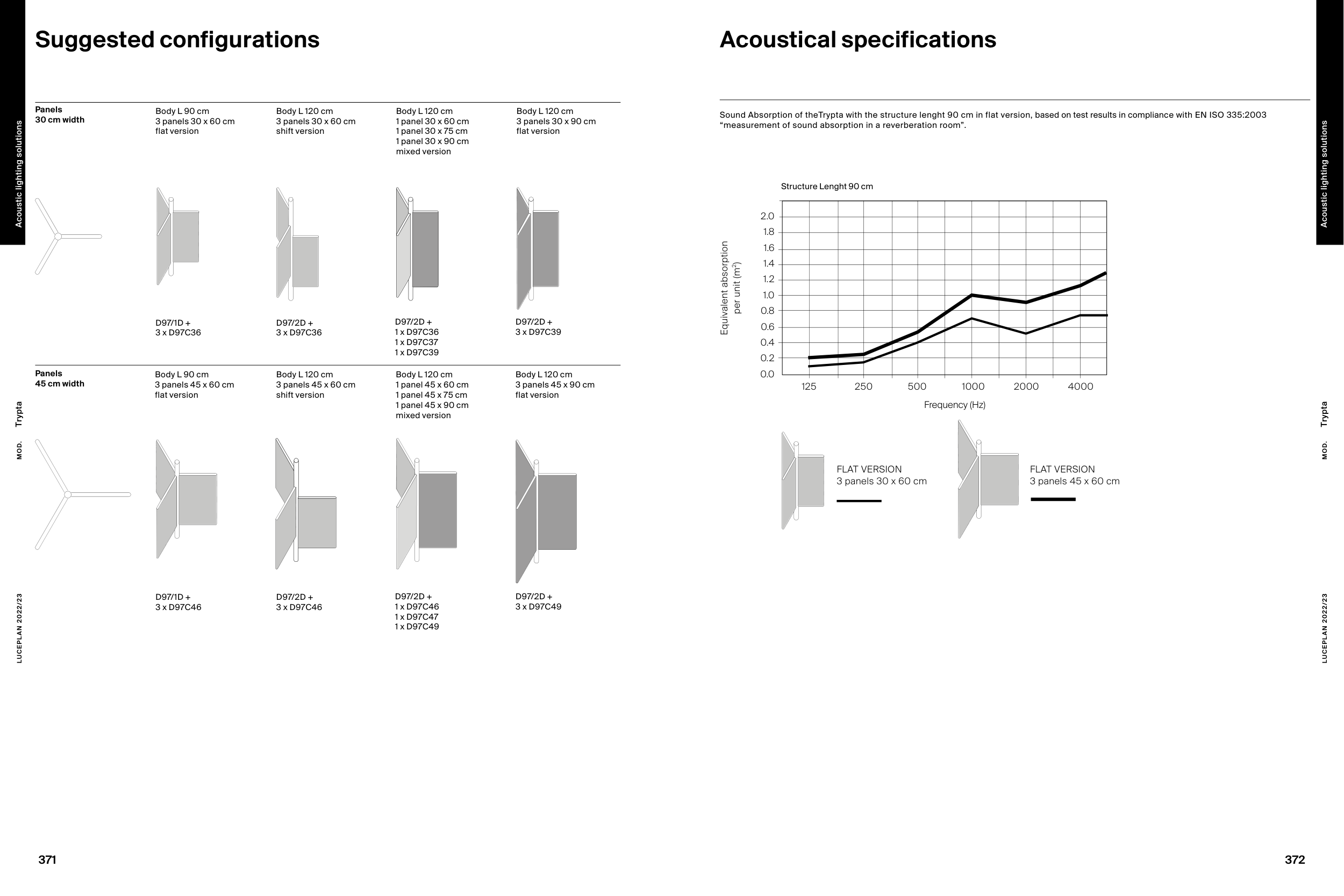 Sound Absorption of theTrypta with the structure lenght 90 cm in flat version, based on test results in compliance with EN ISO 335:2003