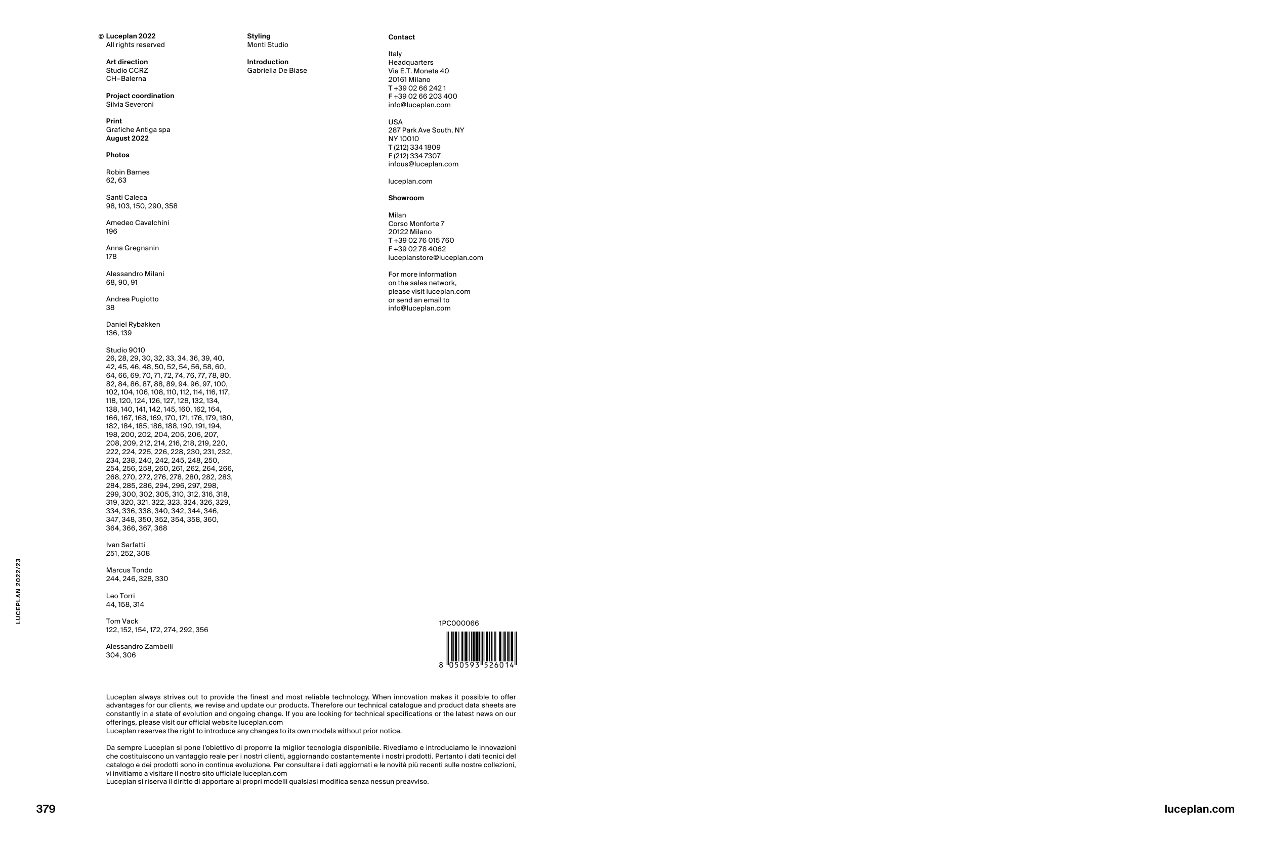 Catalogue Luceplan: Product Collections 2022-2023, page 191 of 191