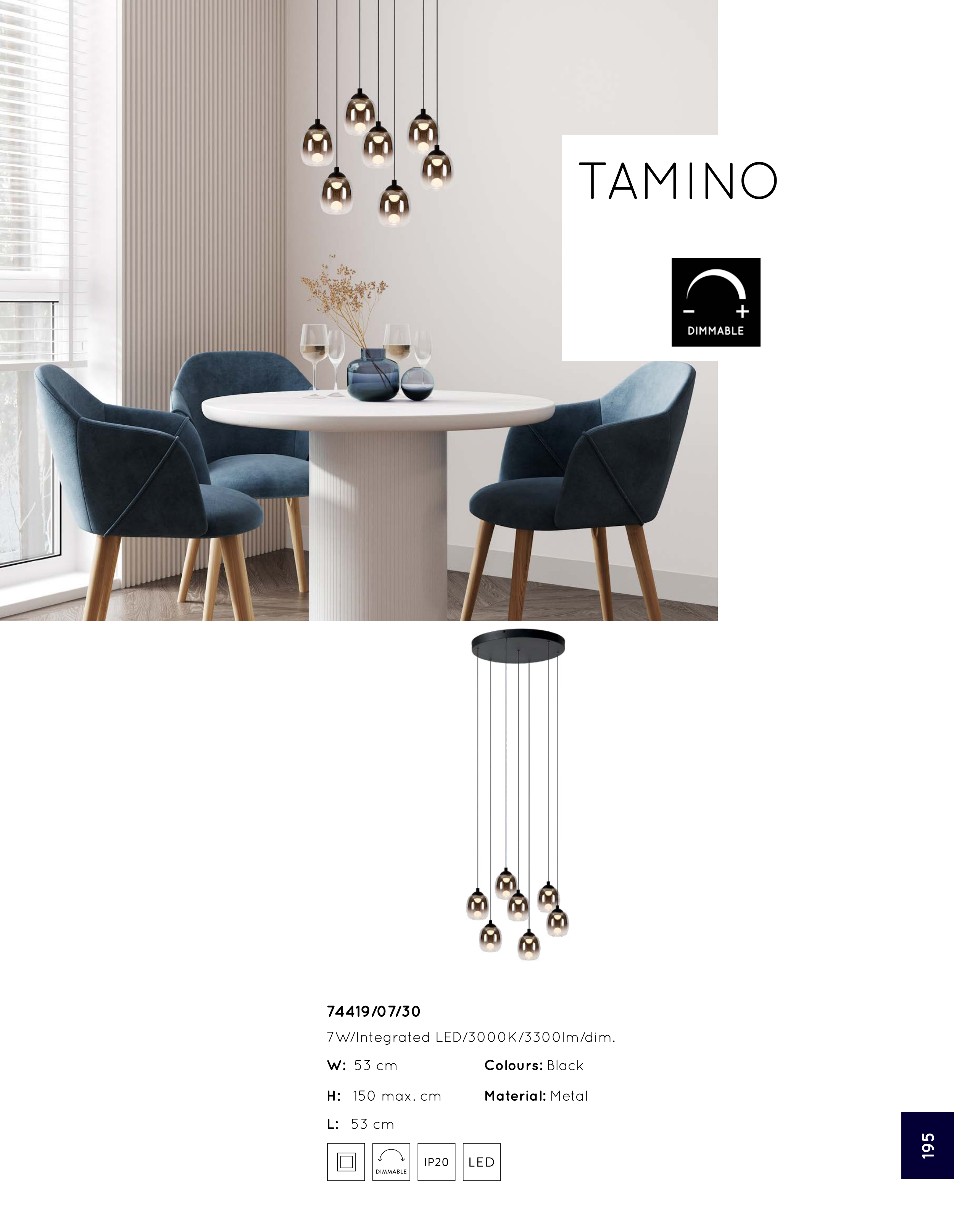 7W/Integrated LED/3000K/3300lm/dim.