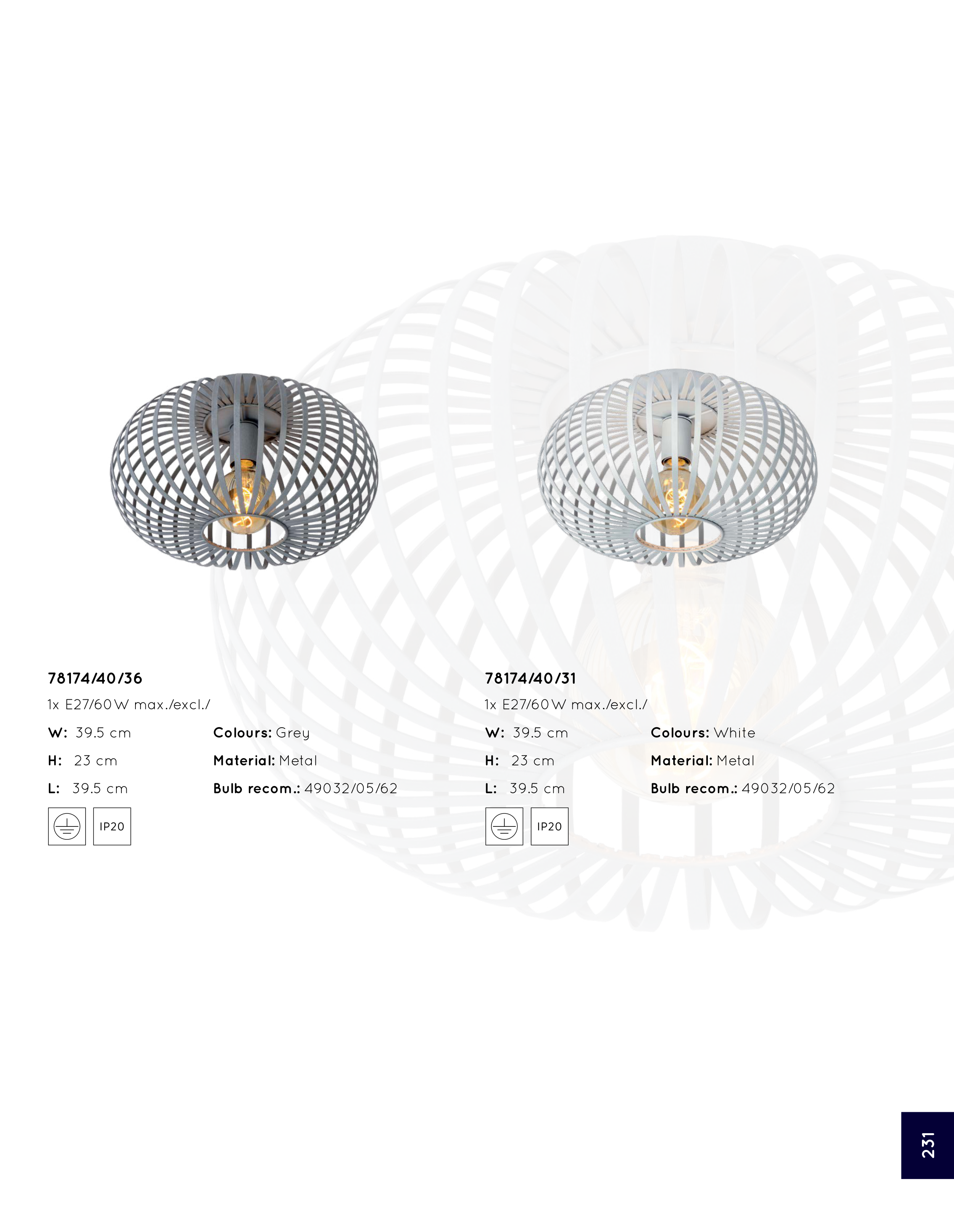 1x E27/60W max./excl./