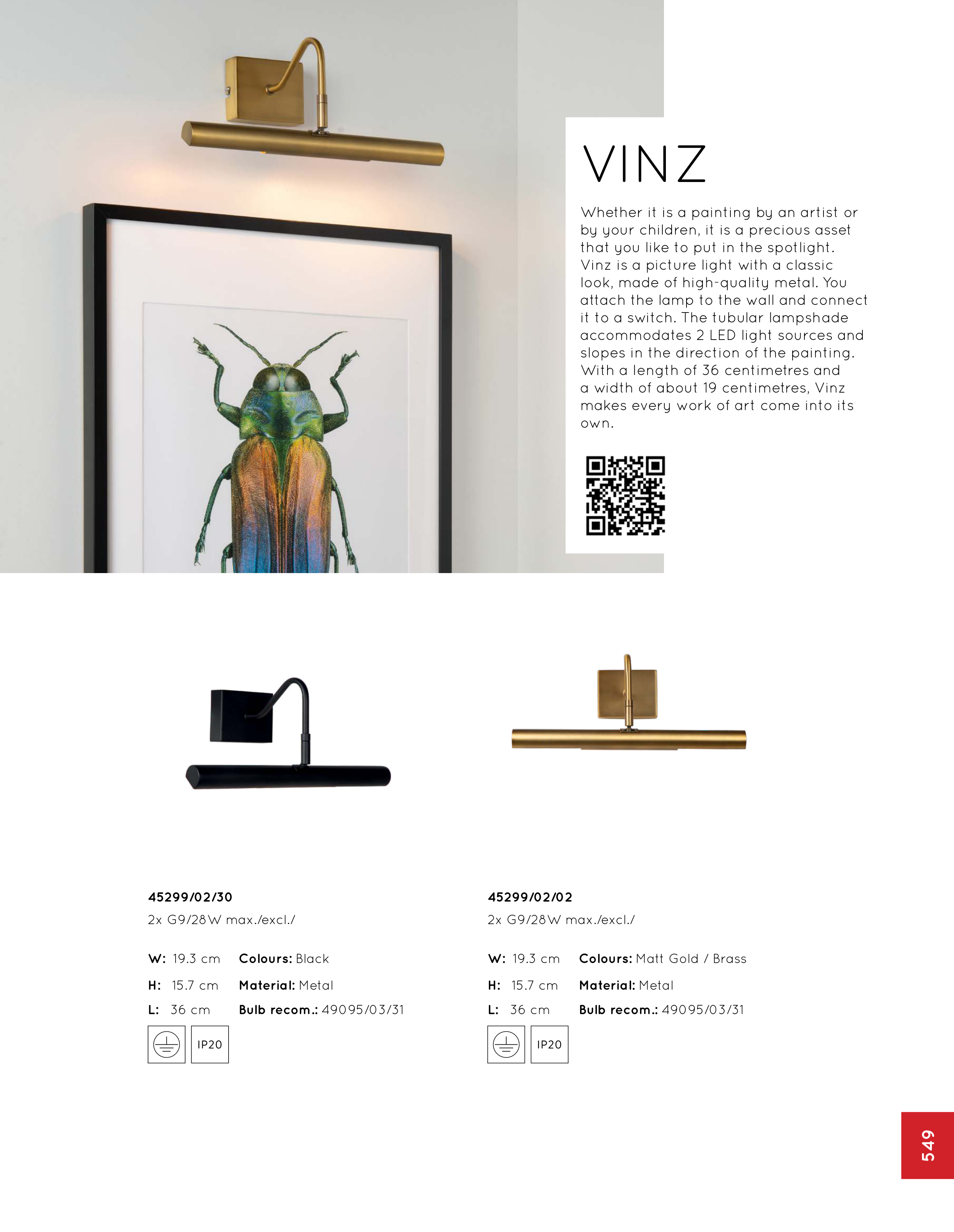 Vinz is a picture light with a classic