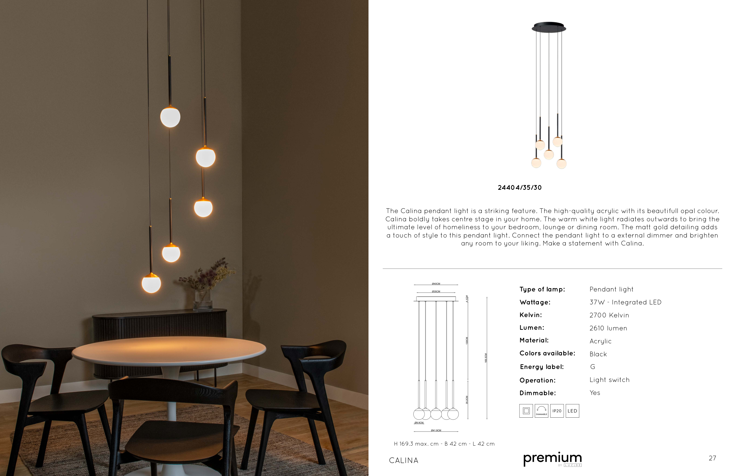 The Calina pendant light is a striking feature. The high-quality acrylic with its beautifull opal colour.