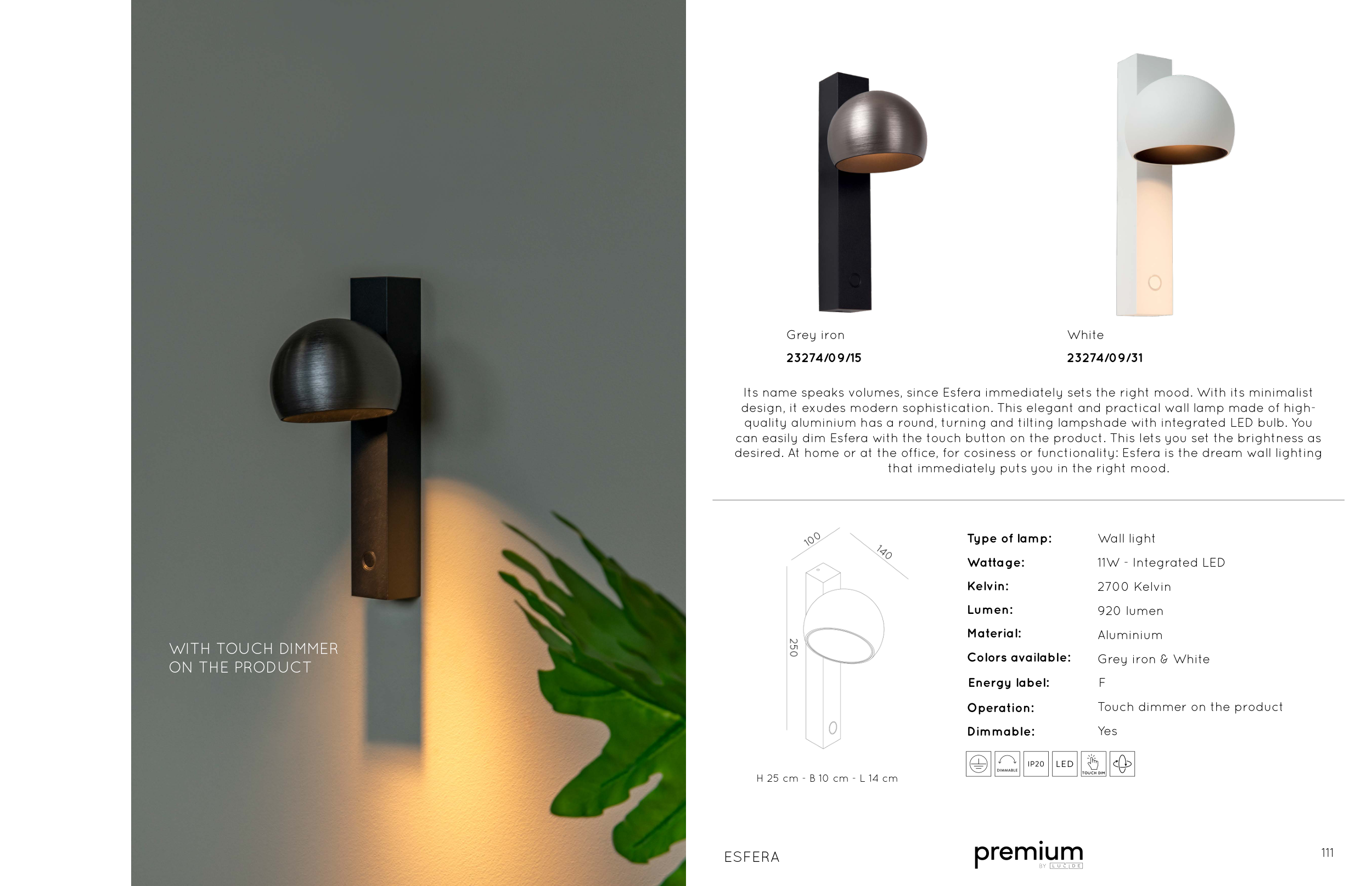 can easily dim Esfera with the touch button on the product. This lets you set the brightness as