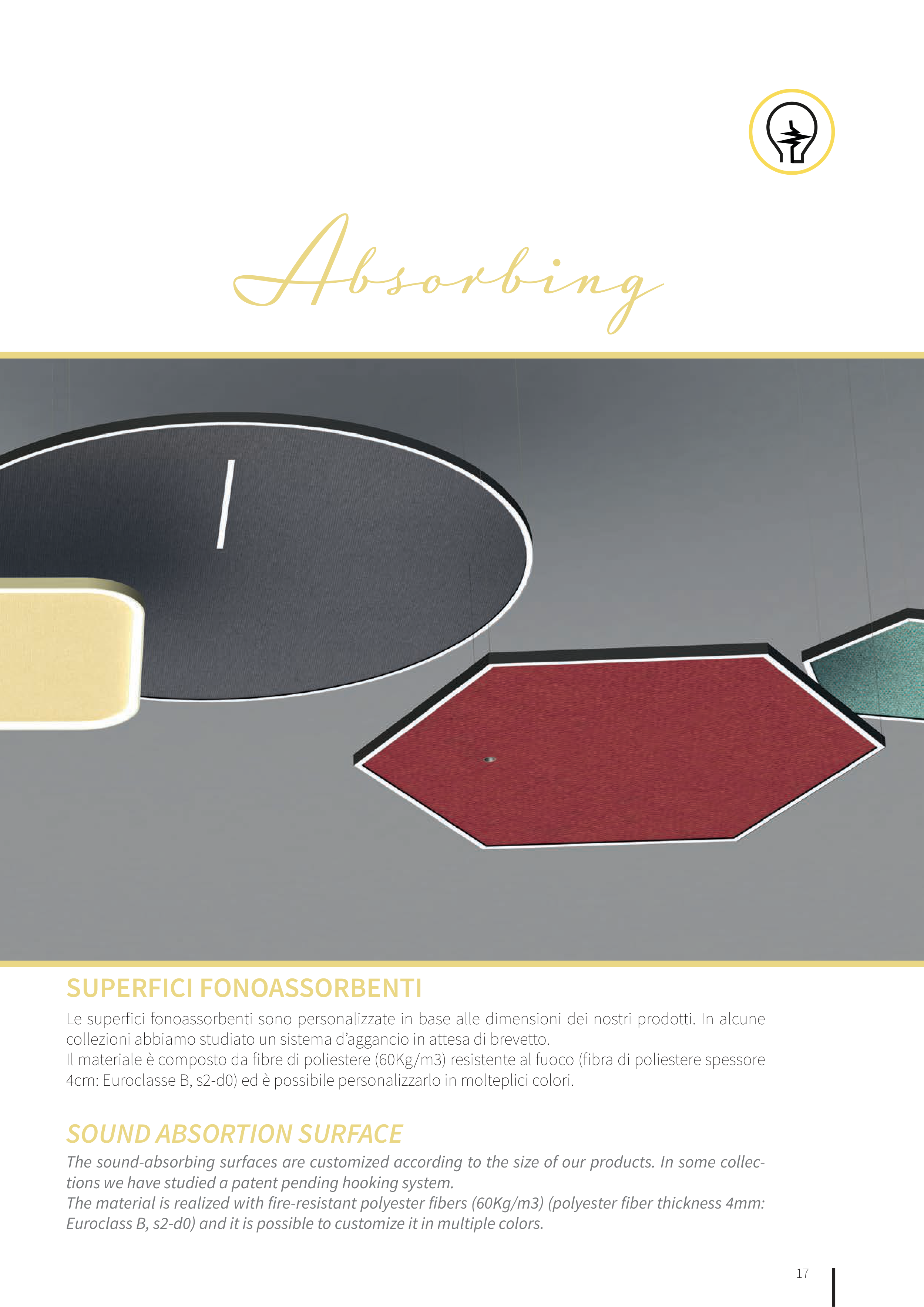 The sound-absorbing surfaces are customized according to the size of our products. In some collec-