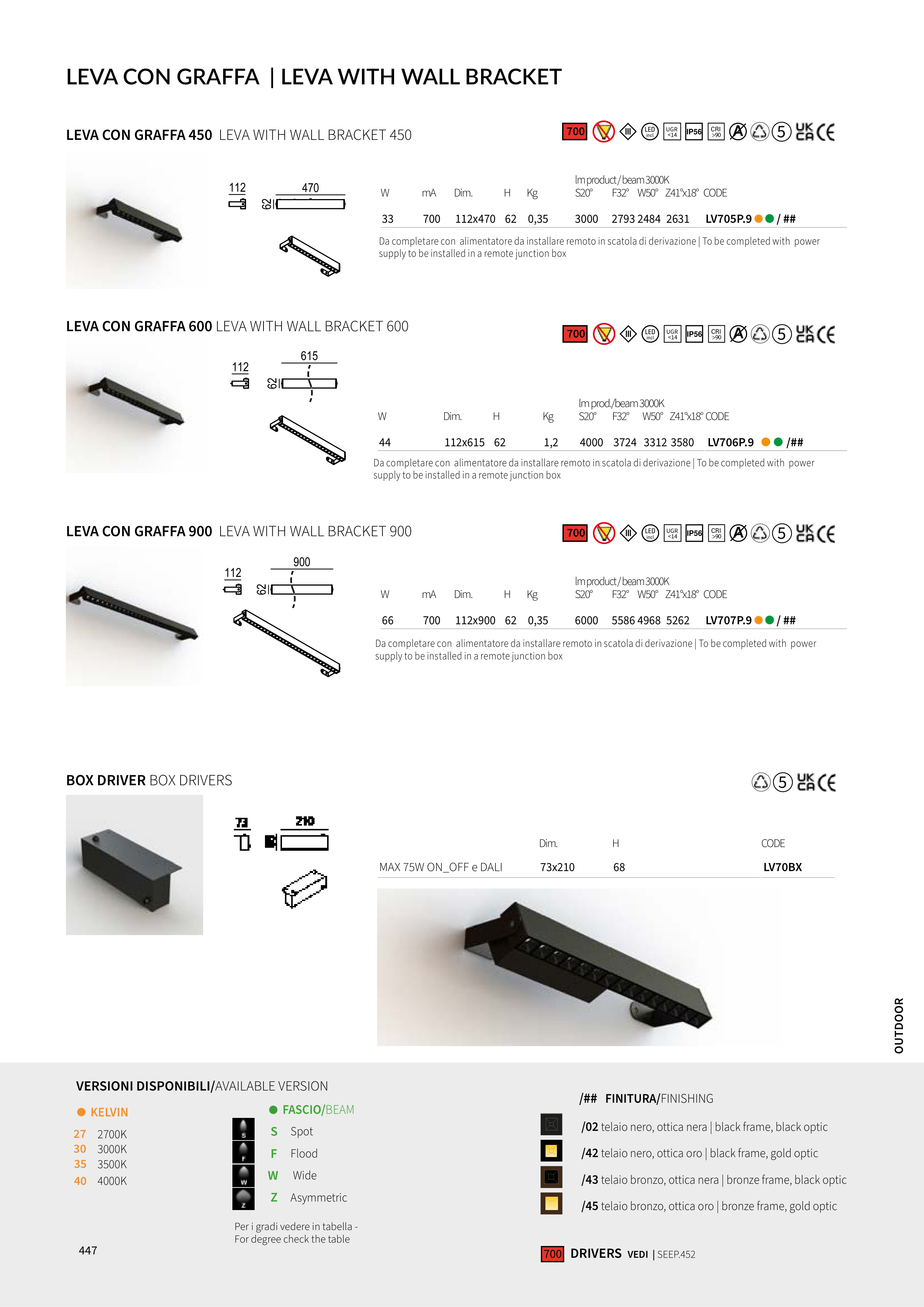 LEVA CON GRAFFA 900 LEVA WITH WALL BRACKET 900
