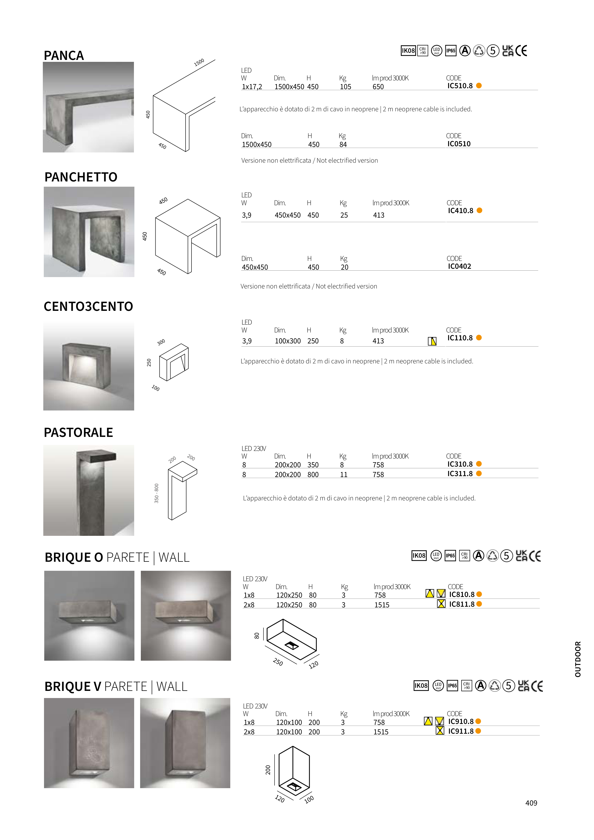L’apparecchio è dotato di 2 m di cavo in neoprene | 2 m neoprene cable is included.