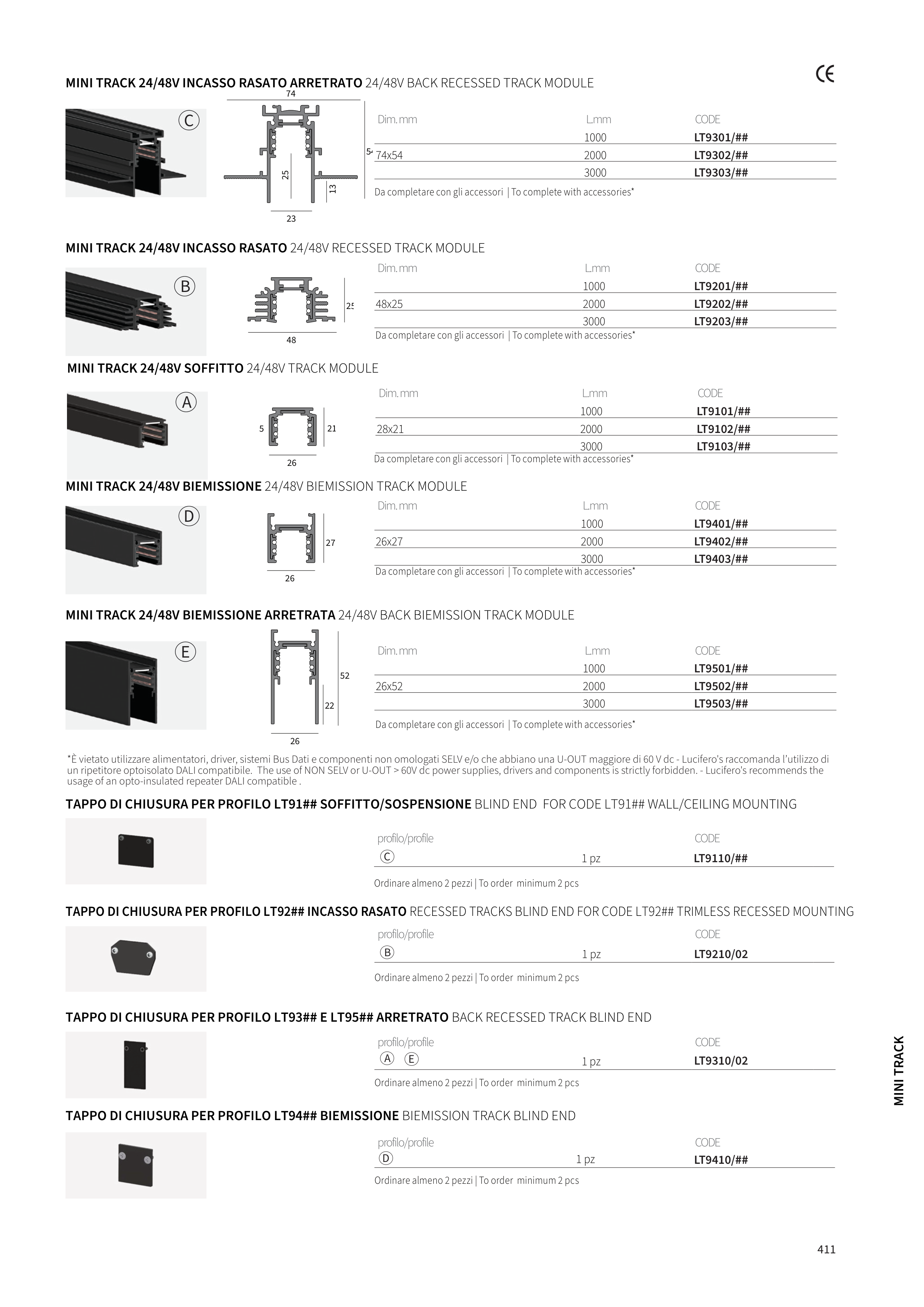 TAPPO DI CHIUSURA PER PROFILO LT94## BIEMISSIONE BIEMISSION TRACK BLIND END