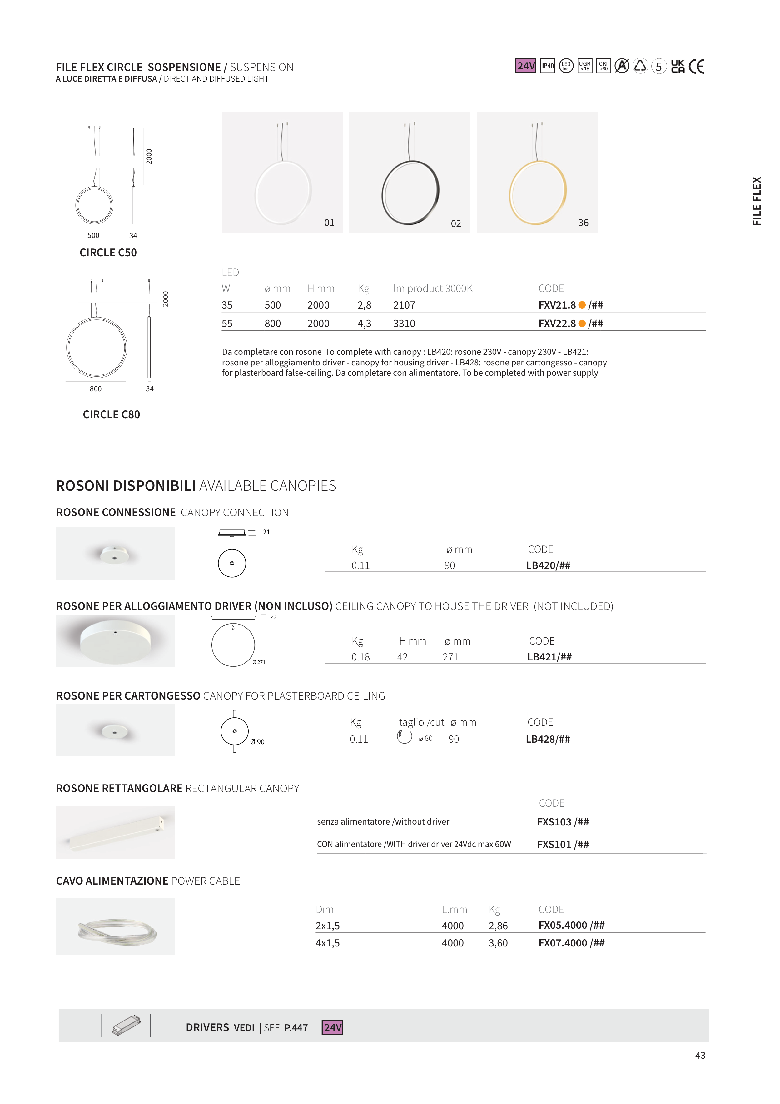 Da completare con rosone To complete with canopy : LB420: rosone 230V - canopy 230V - LB421: