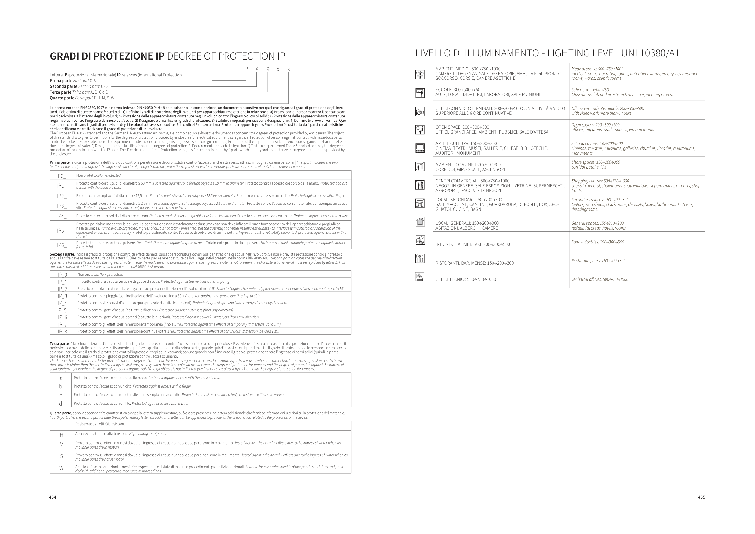LIVELLO DI ILLUMINAMENTO - LIGHTING LEVEL UNI 10380/A1