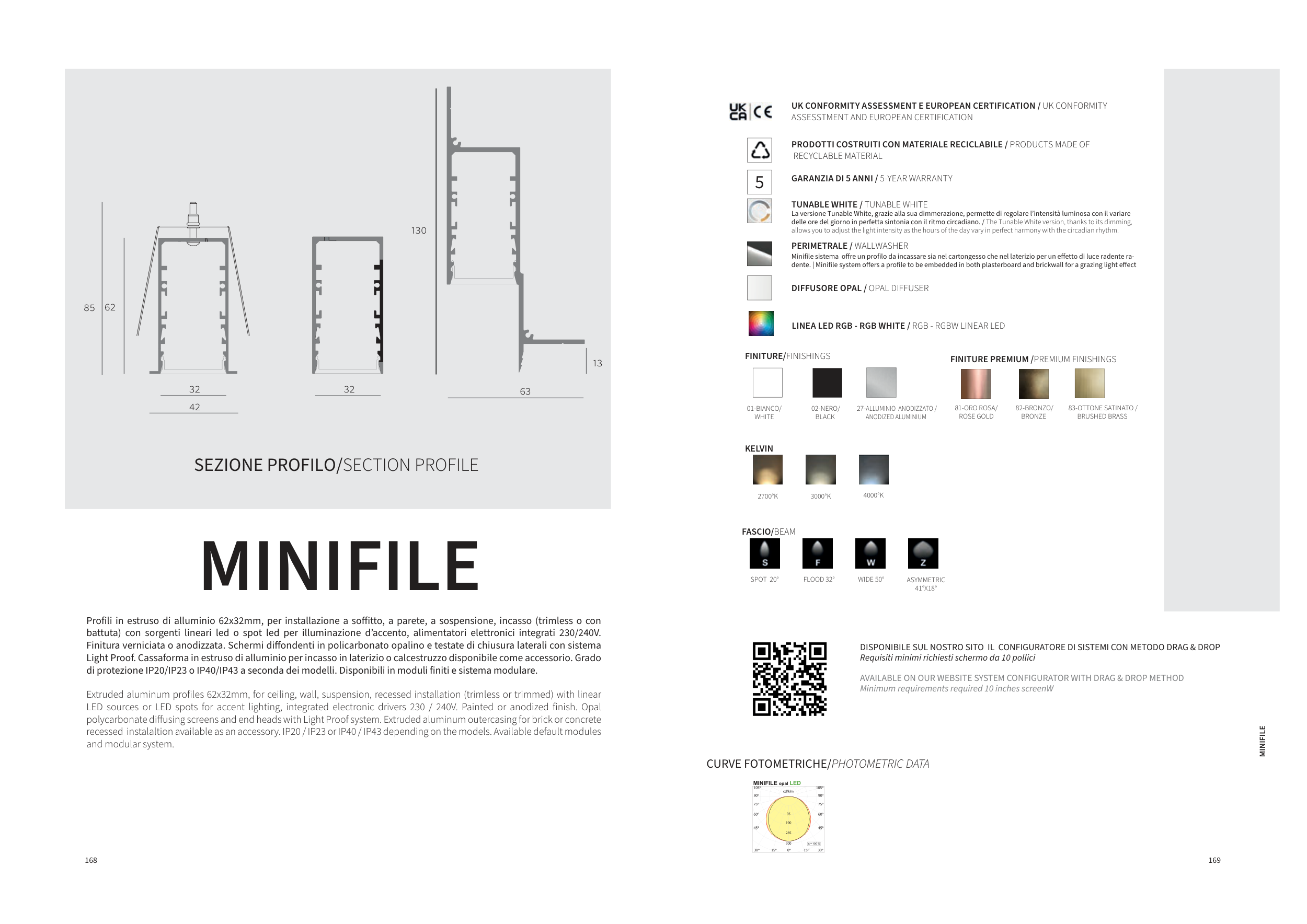 LED sources or LED spots for accent lighting, integrated electronic drivers 230 / 240V. Painted or anodized finish. Opal