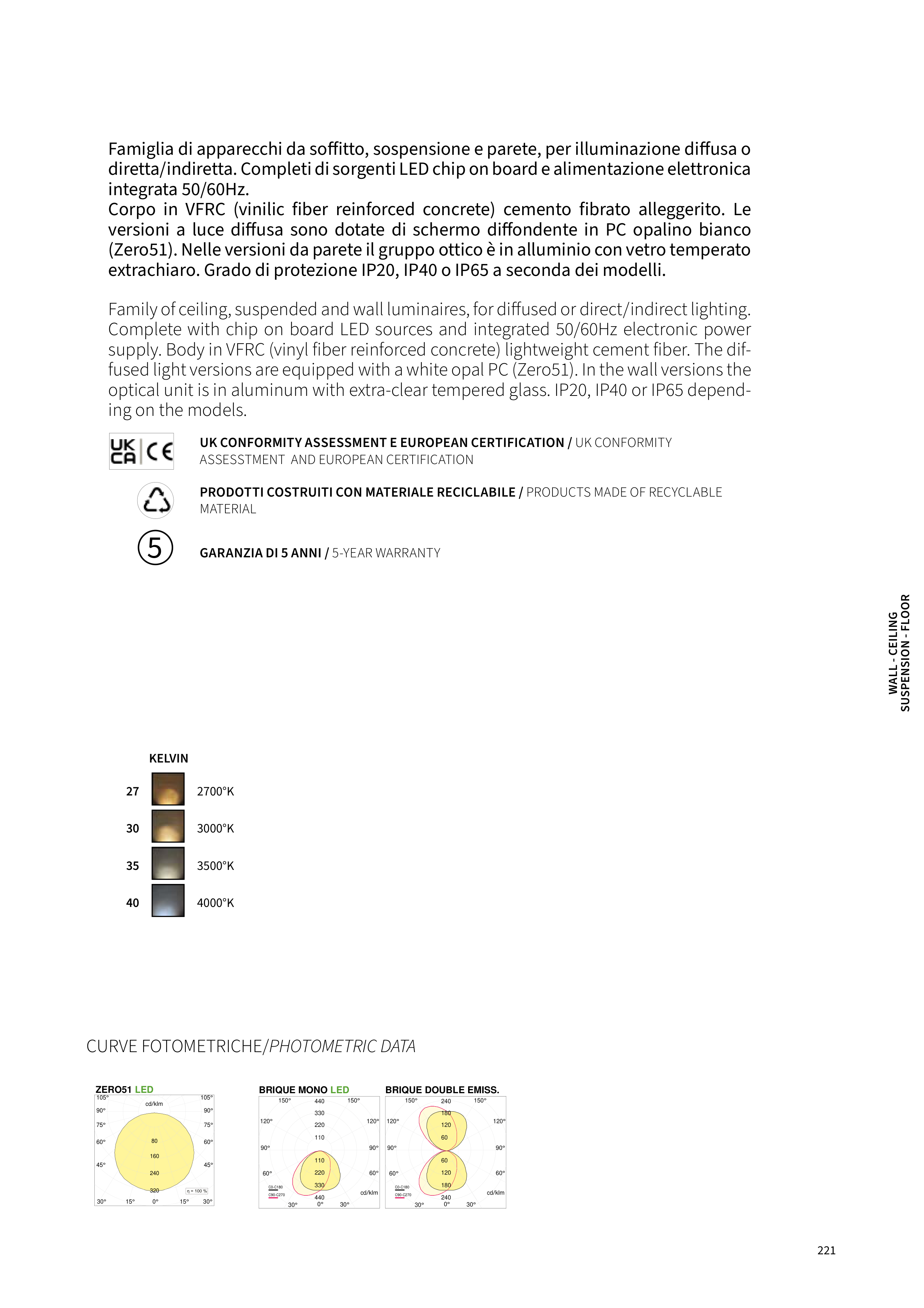 optical unit is in aluminum with extra-clear tempered glass. IP20, IP40 or IP65 depend-
