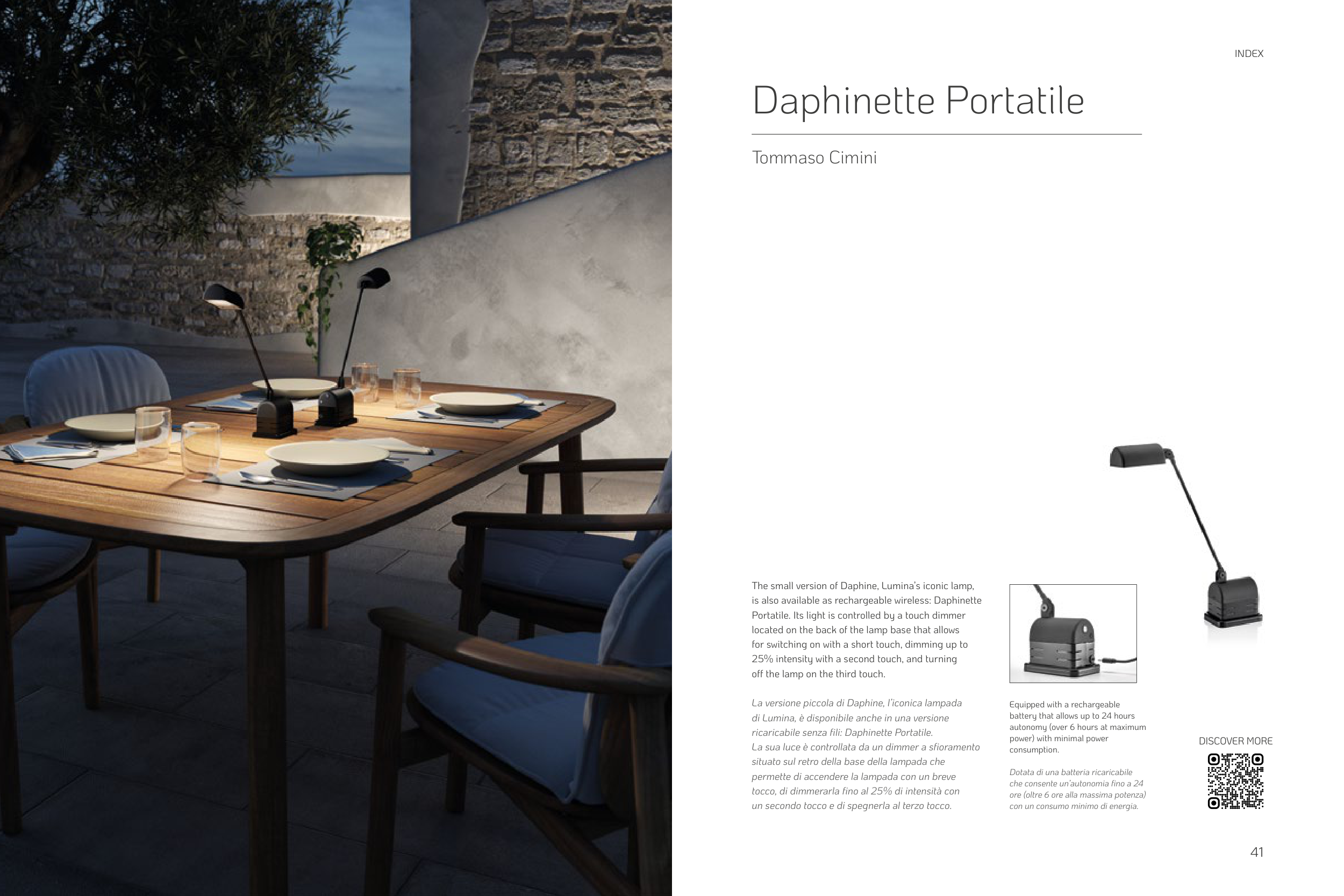 Portatile. Its light is controlled by a touch dimmer