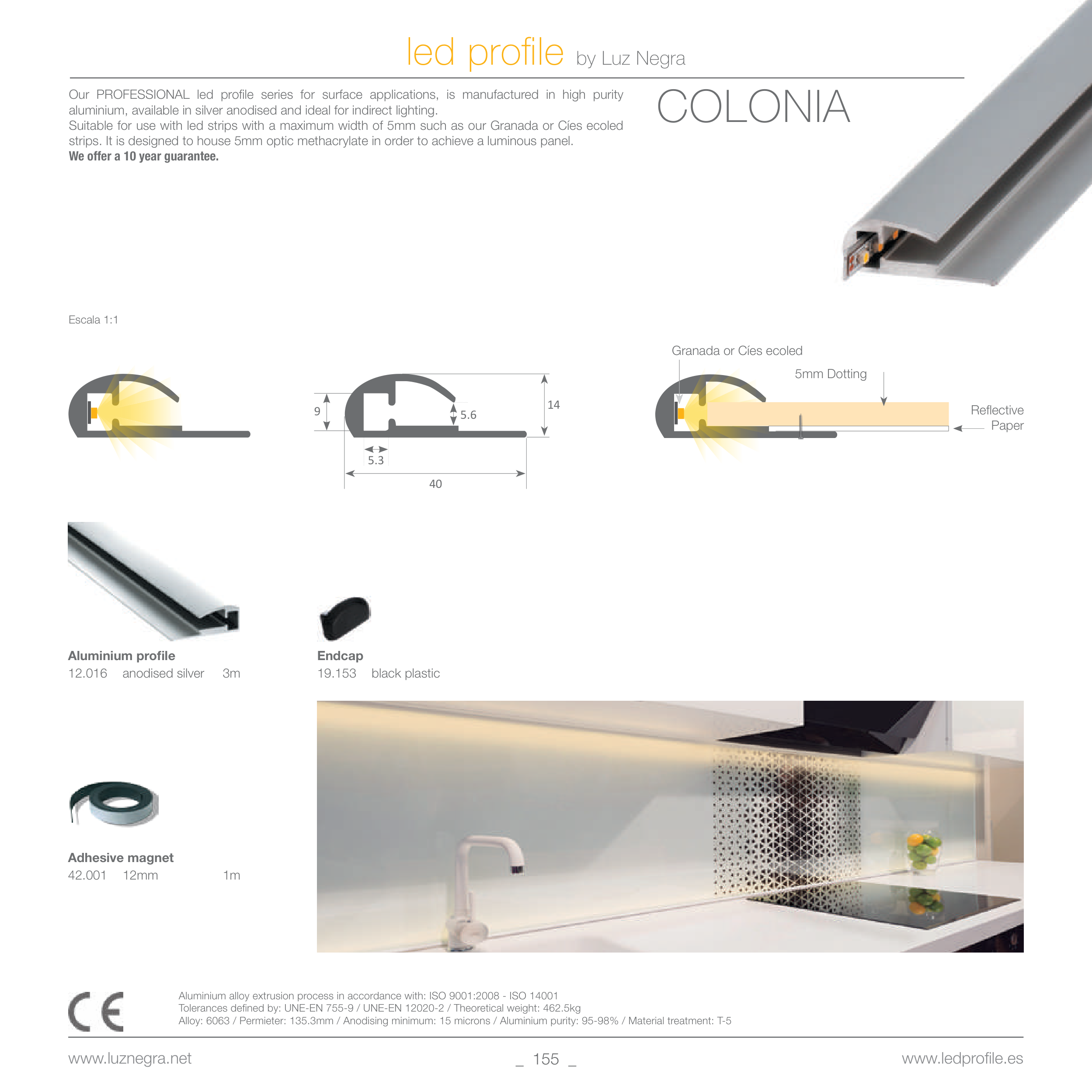 Suitable for use with led strips with a maximum width of 5mm such as our Granada or Cíes ecoled