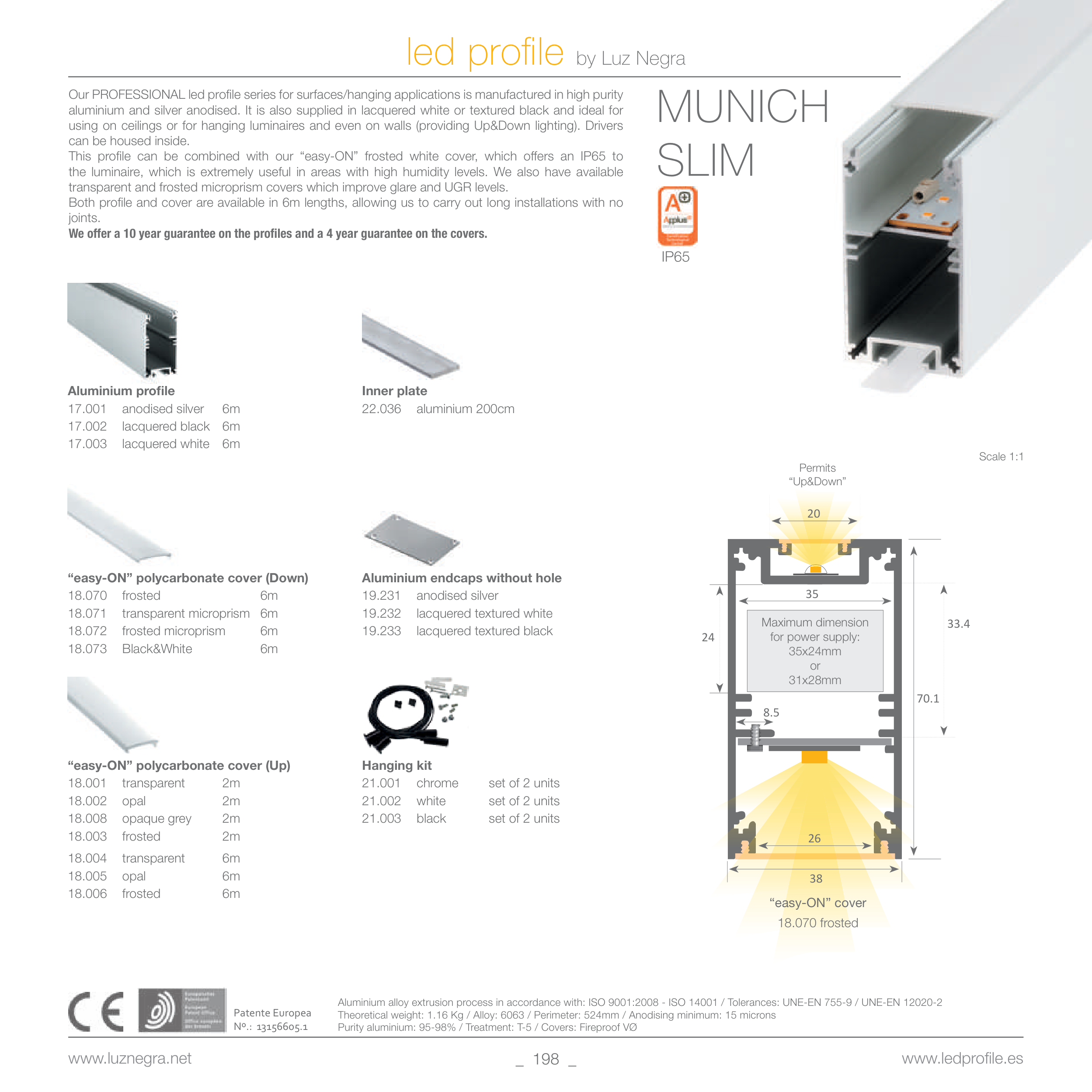 Theoretical weight: 1.16 Kg / Alloy: 6063 / Perimeter: 524mm / Anodising minimum: 15 microns