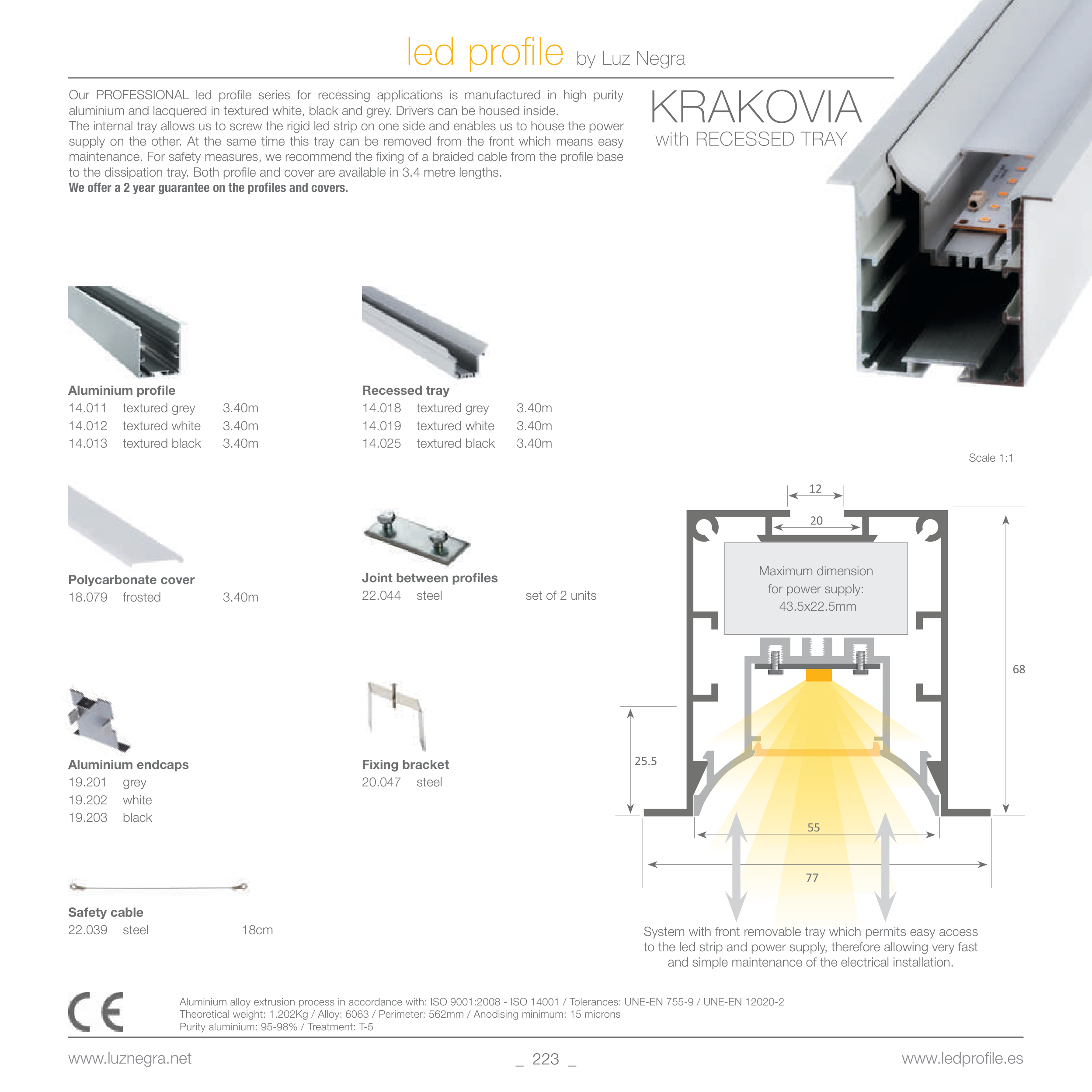 to the dissipation tray. Both profile and cover are available in 3.4 metre lengths.