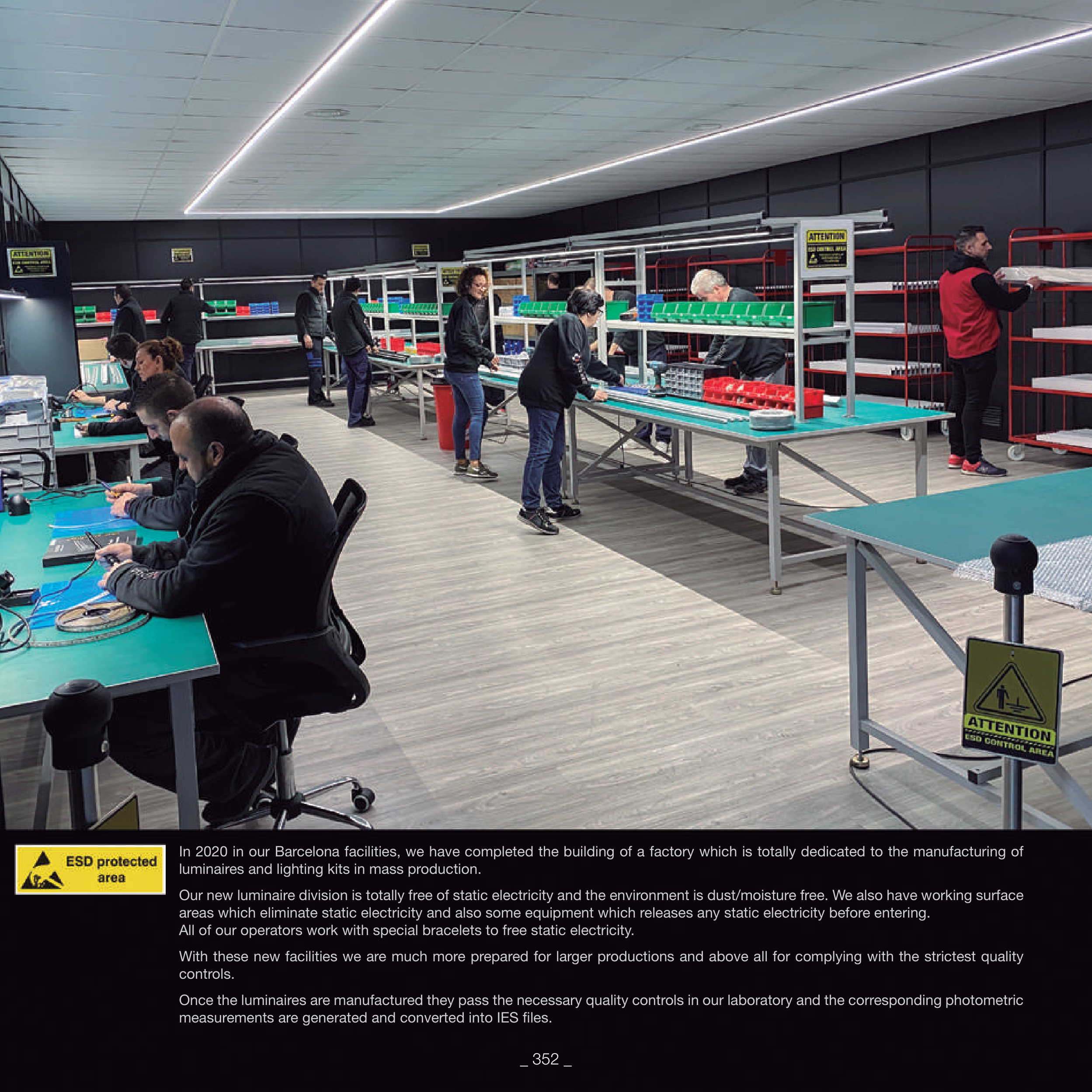 Our new luminaire division is totally free of static electricity and the environment is dust/moisture free. We also have working surface