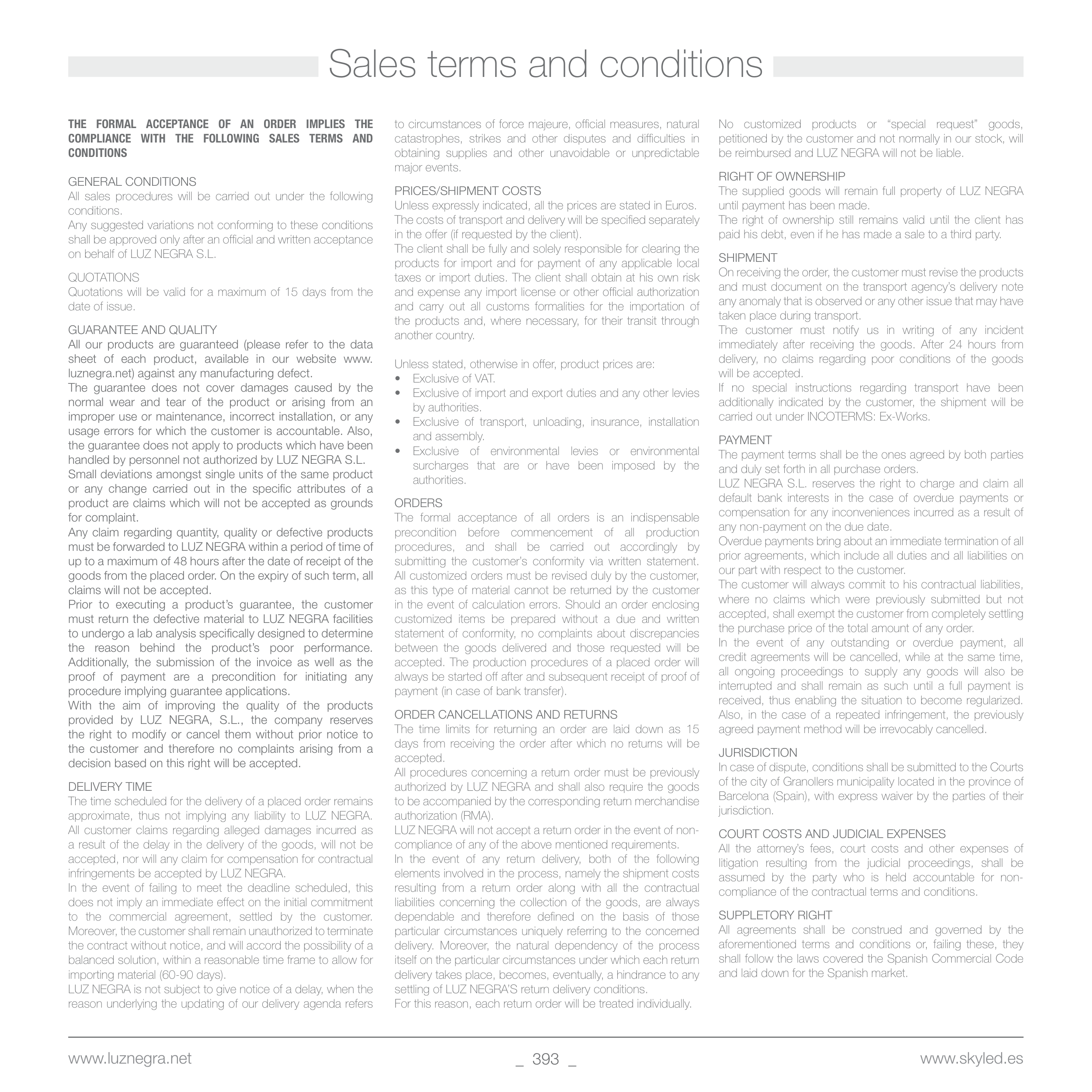 The supplied goods will remain full property of LUZ NEGRA