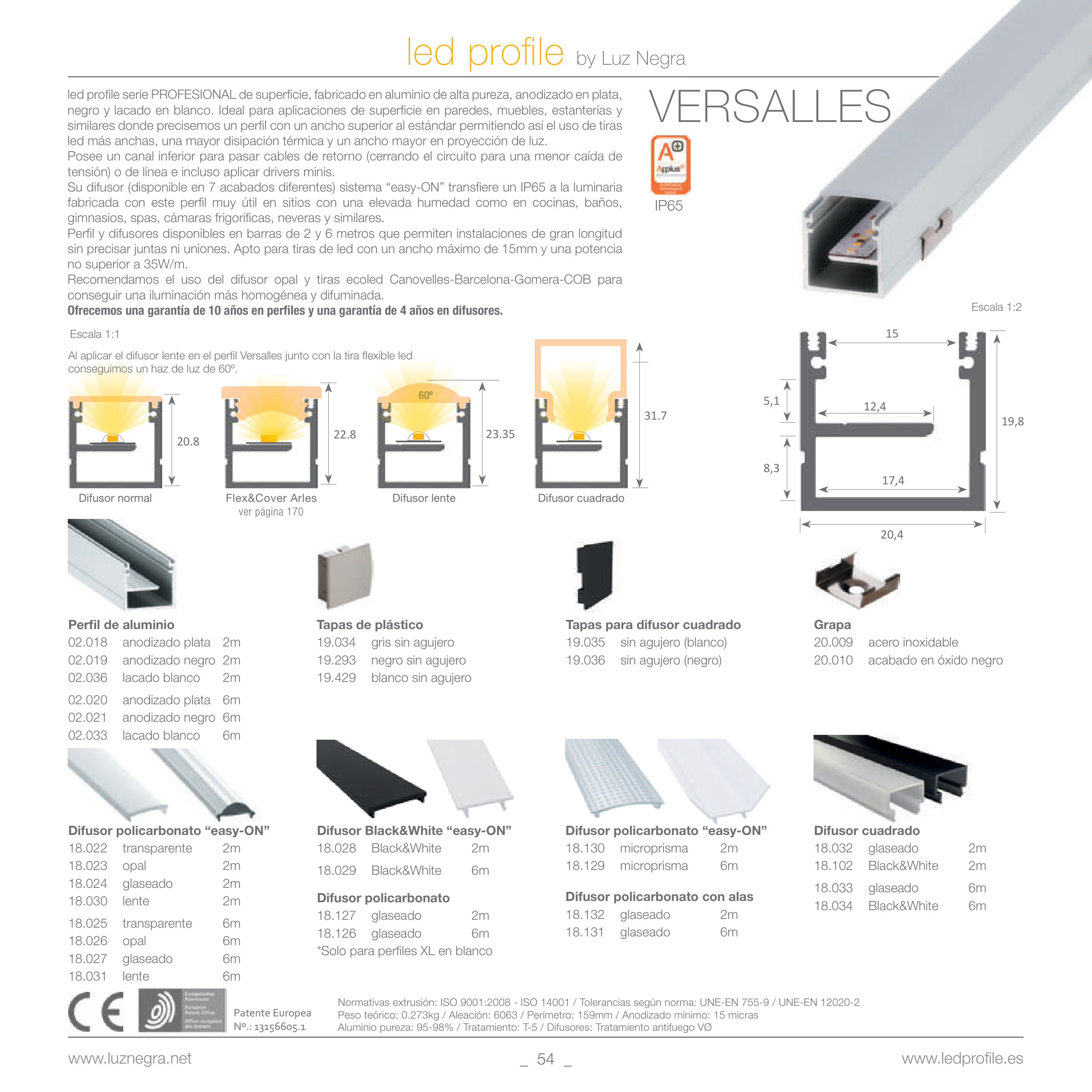 Aluminio pureza: 95-98% / Tratamiento: T-5 / Difusores: Tratamiento antifuego VØ
