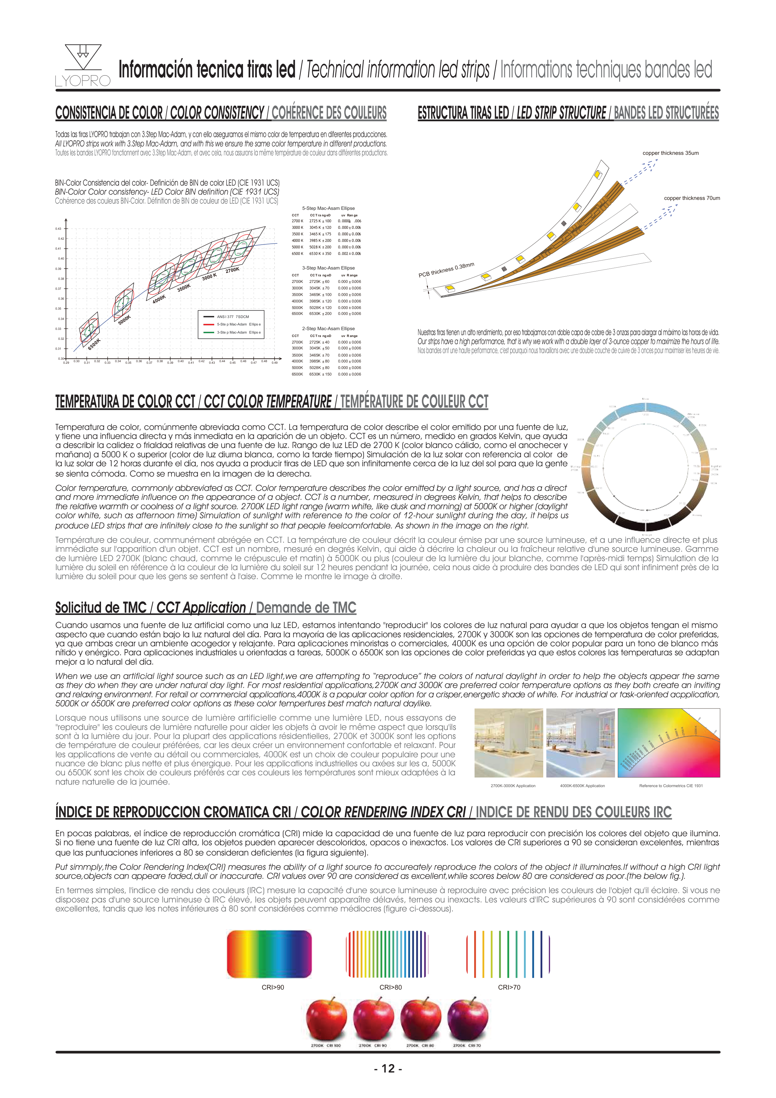 Toutes les bandes LYOPRO fonctionnent avec 3.Step Mac-Adam, et avec cela, nous assurons la même température de couleur dans différentes productions.