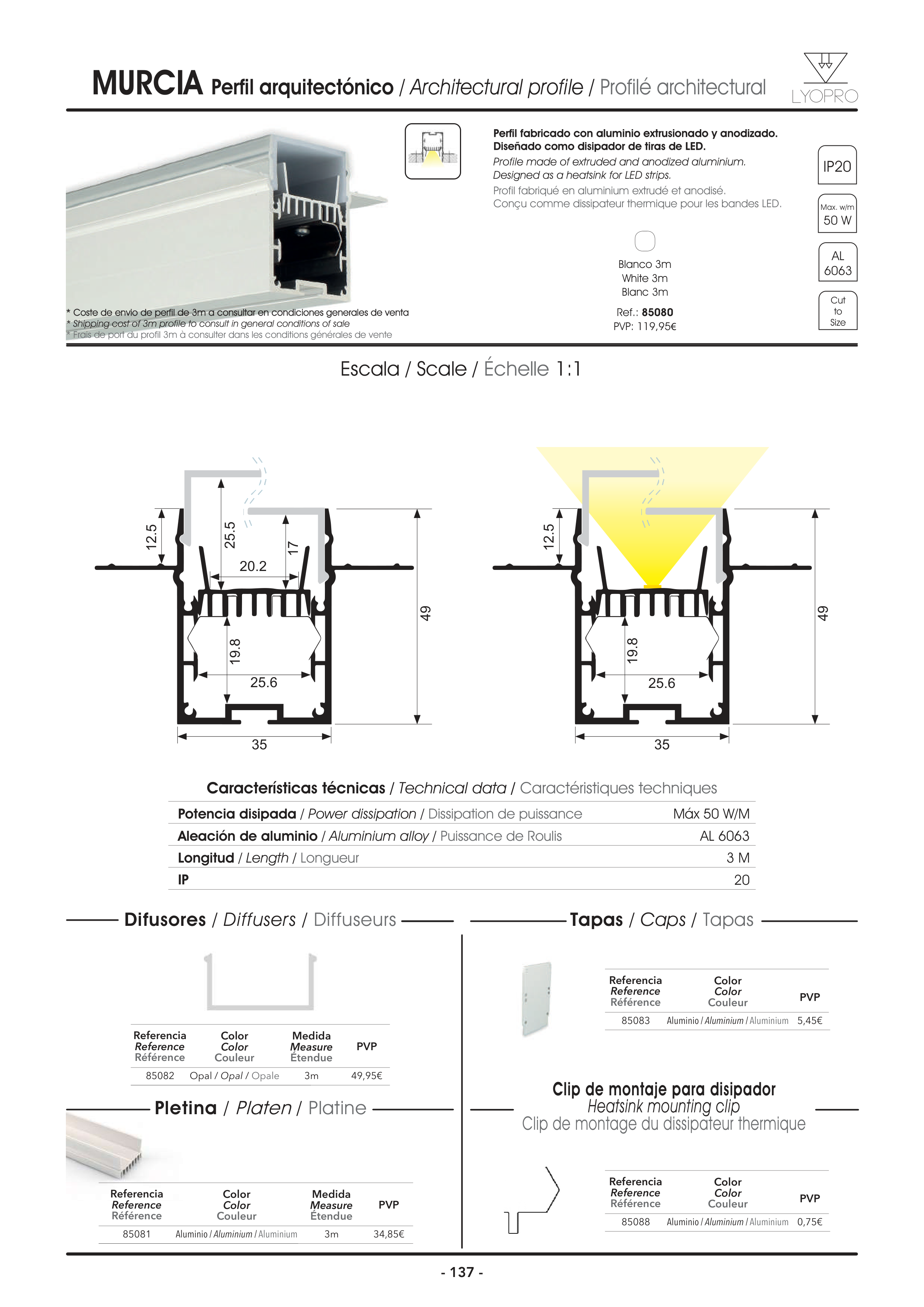* Shipping cost of 3m profile to consult in general conditions of sale