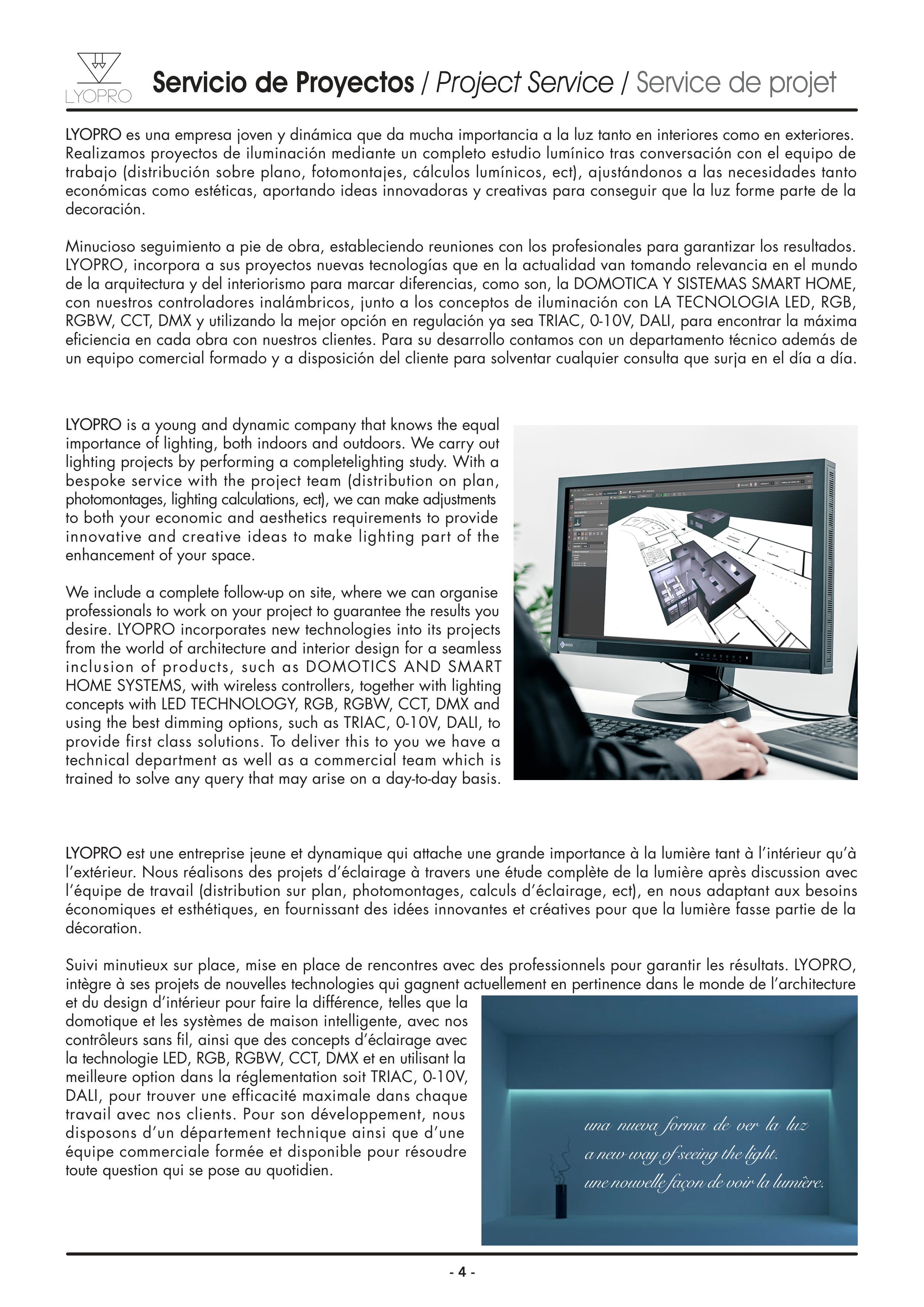 LYOPRO es una empresa joven y dinámica que da mucha importancia a la luz tanto en interiores como en exteriores.