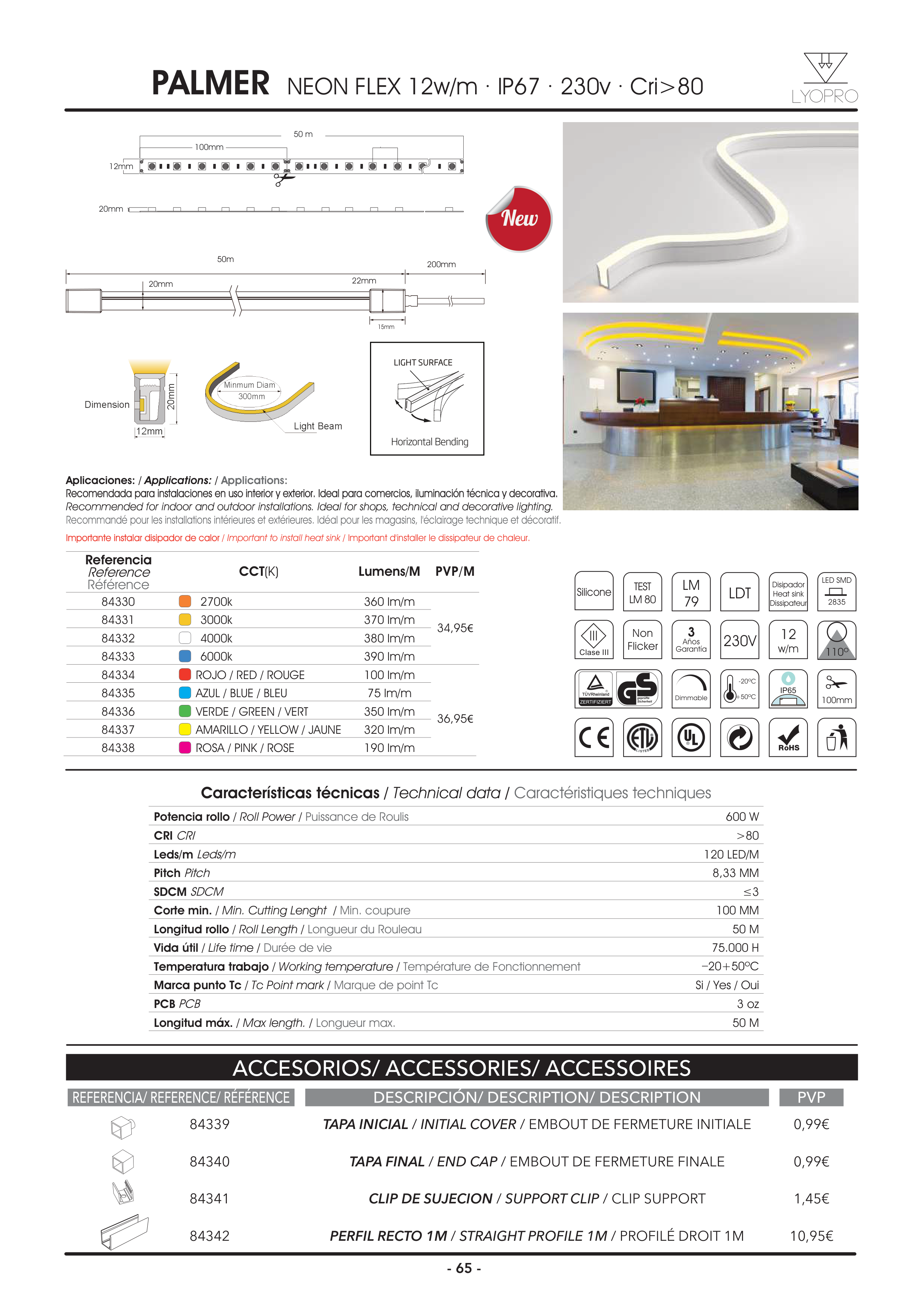 PALMER NEON FLEX 12w/m · IP67 · 230v · Cri>80