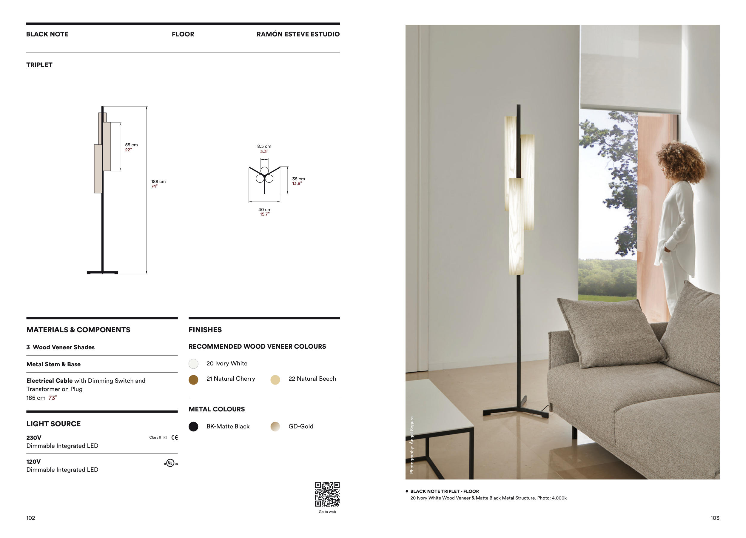 20 Ivory White Wood Veneer & Matte Black Metal Structure. Photo: 4.000k