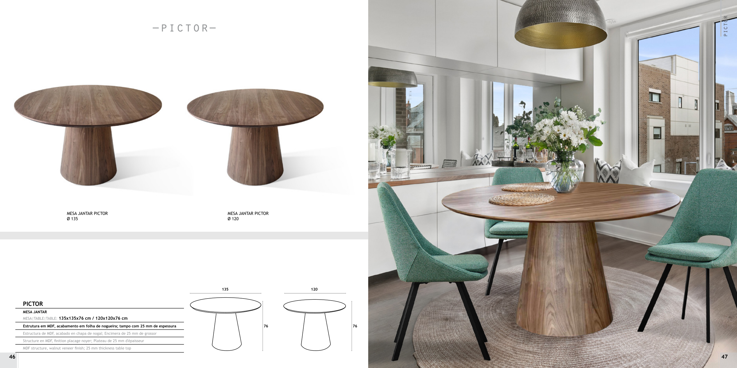 MESA|TABLE|TABLE: 135x135x76 cm / 120x120x76 cm