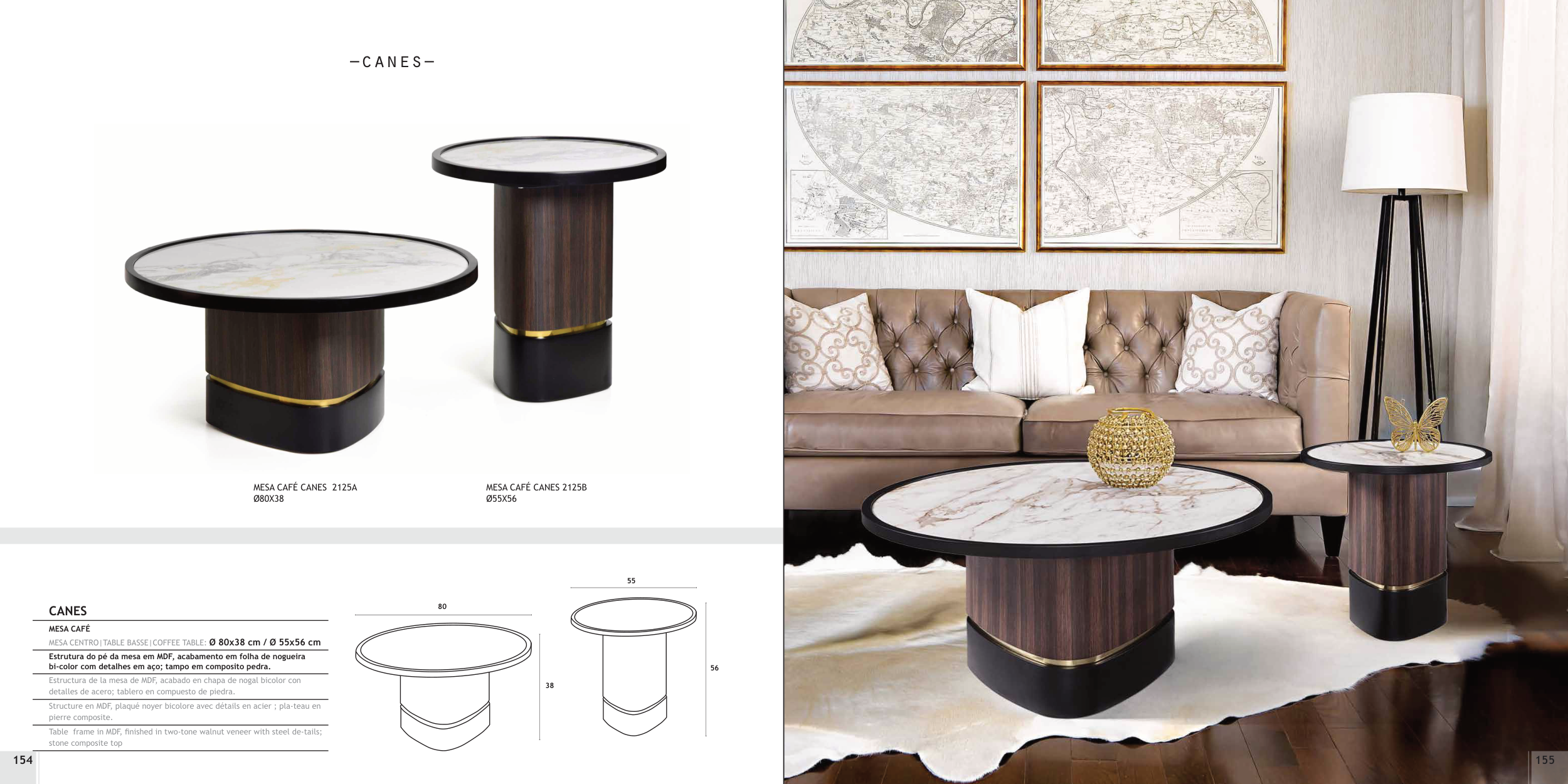 MESA CENTRO|TABLE BASSE|COFFEE TABLE: Ø 80x38 cm / Ø 55x56 cm