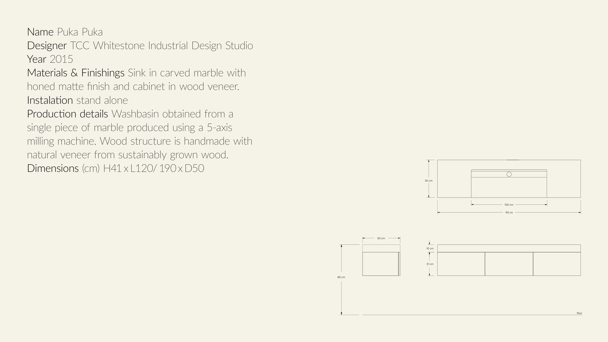 honed matte finish and cabinet in wood veneer.