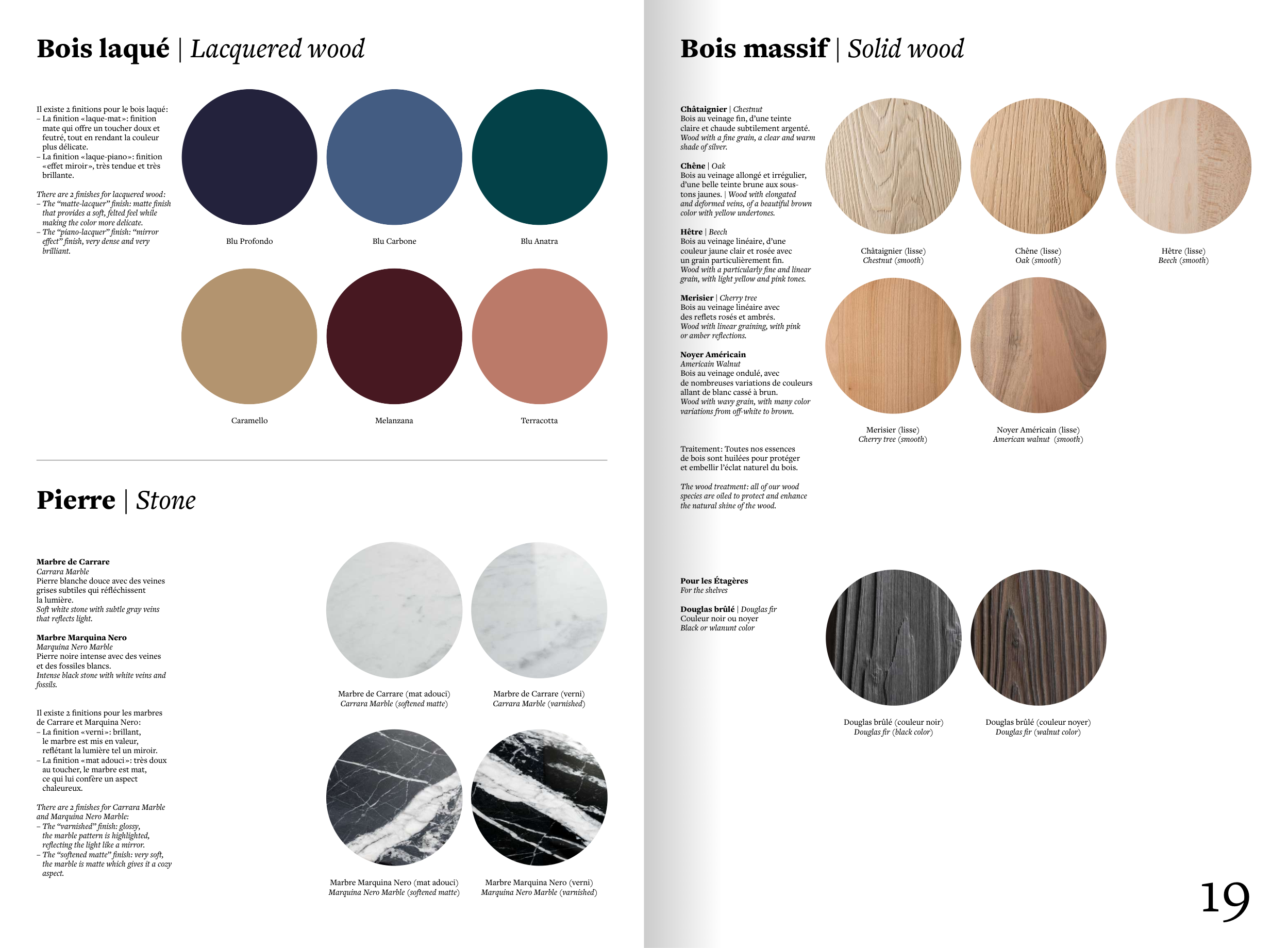 Il existe 2 finitions pour le bois laqué :