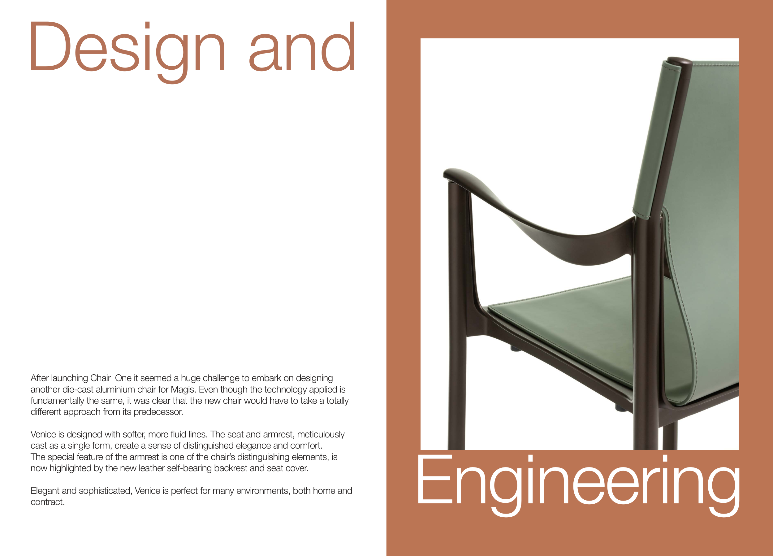 Venice is designed with softer, more fluid lines. The seat and armrest, meticulously
