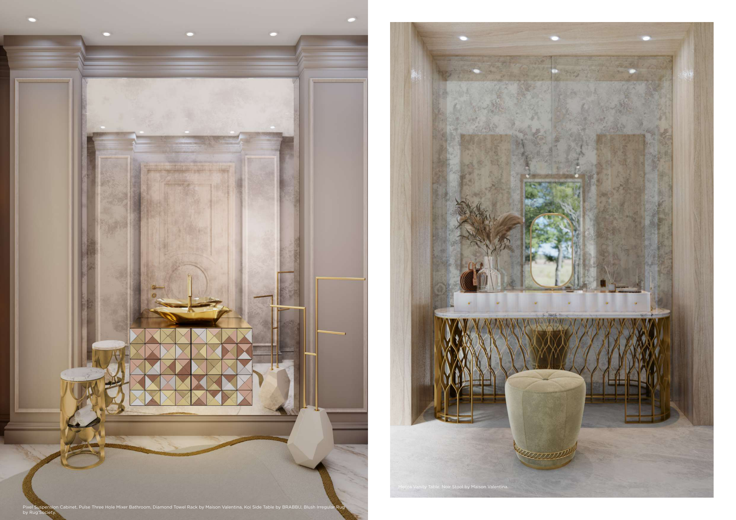 Pixel Suspension Cabinet, Pulse Three Hole Mixer Bathroom, Diamond Towel Rack by Maison Valentina, Koi Side Table by BRABBU, Blush Irregular Rug
