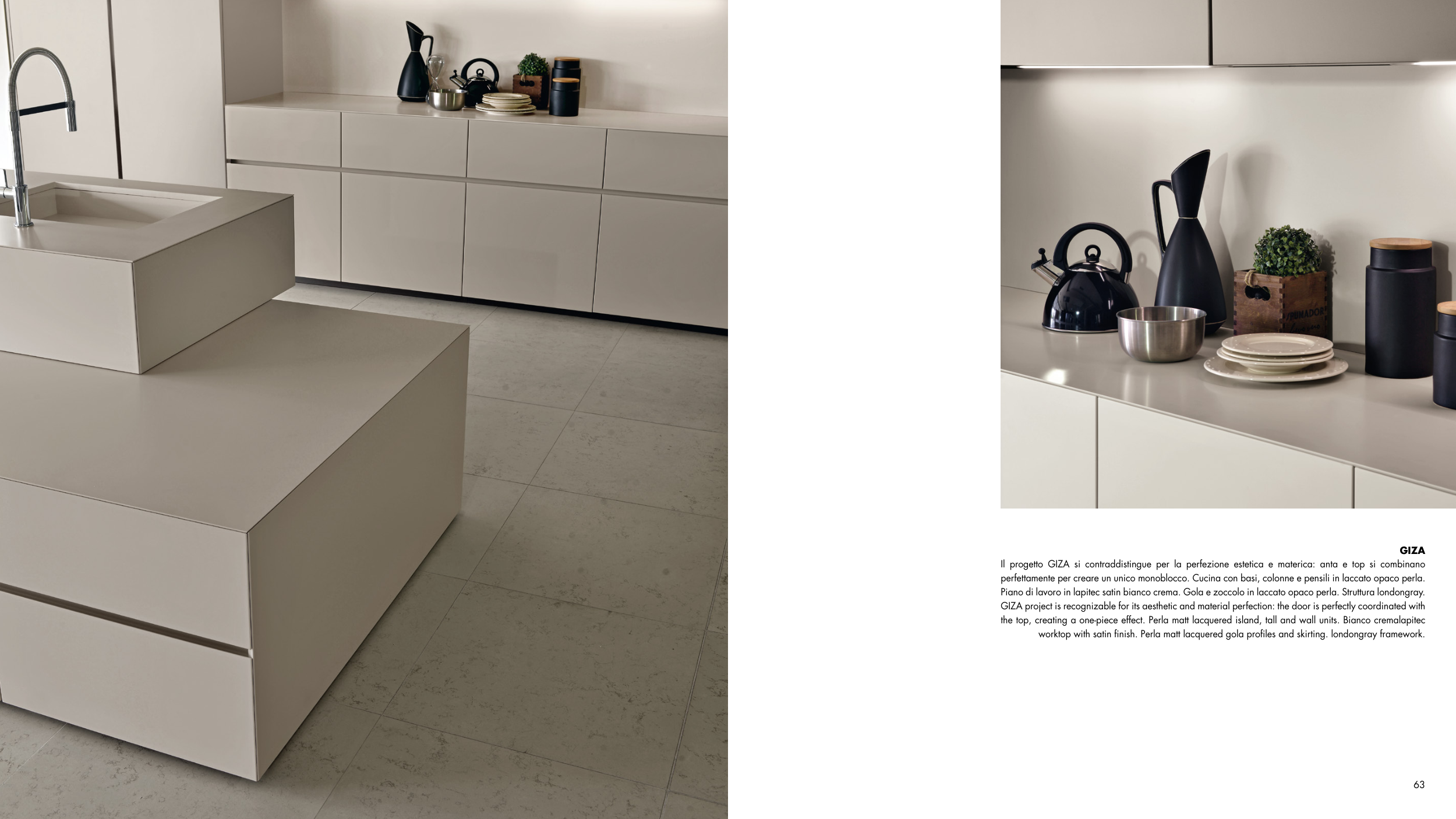 Il progetto GIZA si contraddistingue per la perfezione estetica e materica: anta e top si combinano