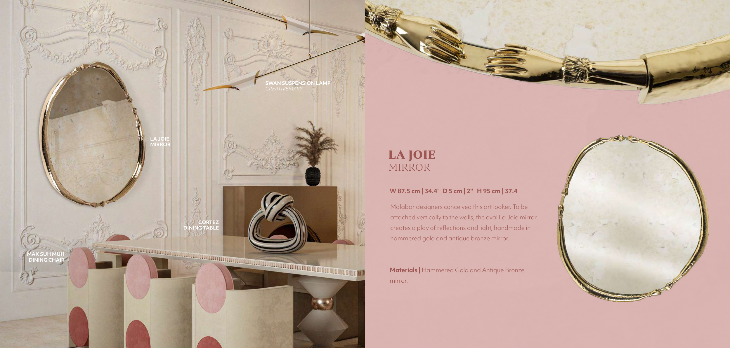 attached vertically to the walls, the oval La Joie mirror