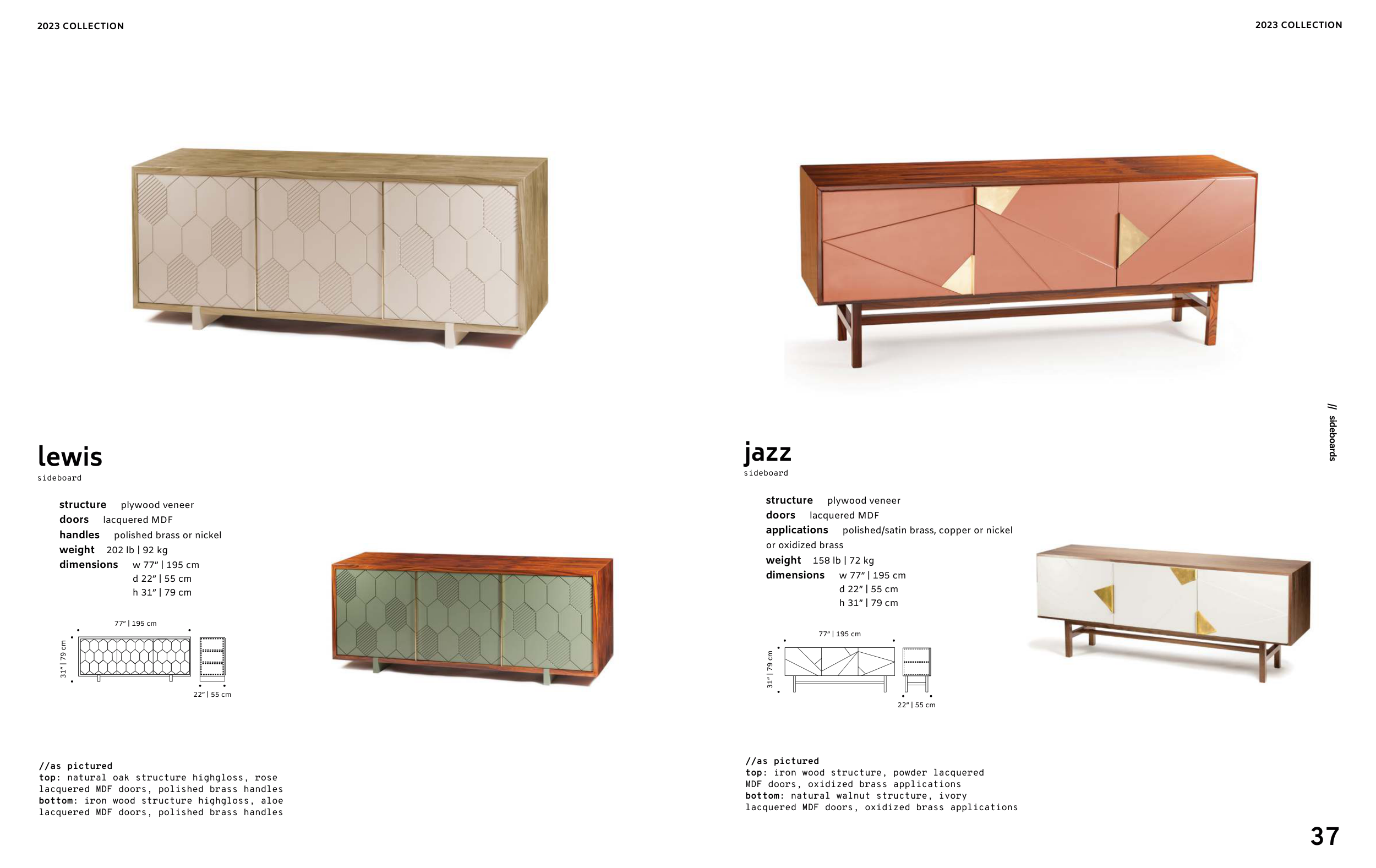 lacquered MDF doors, oxidized brass applications