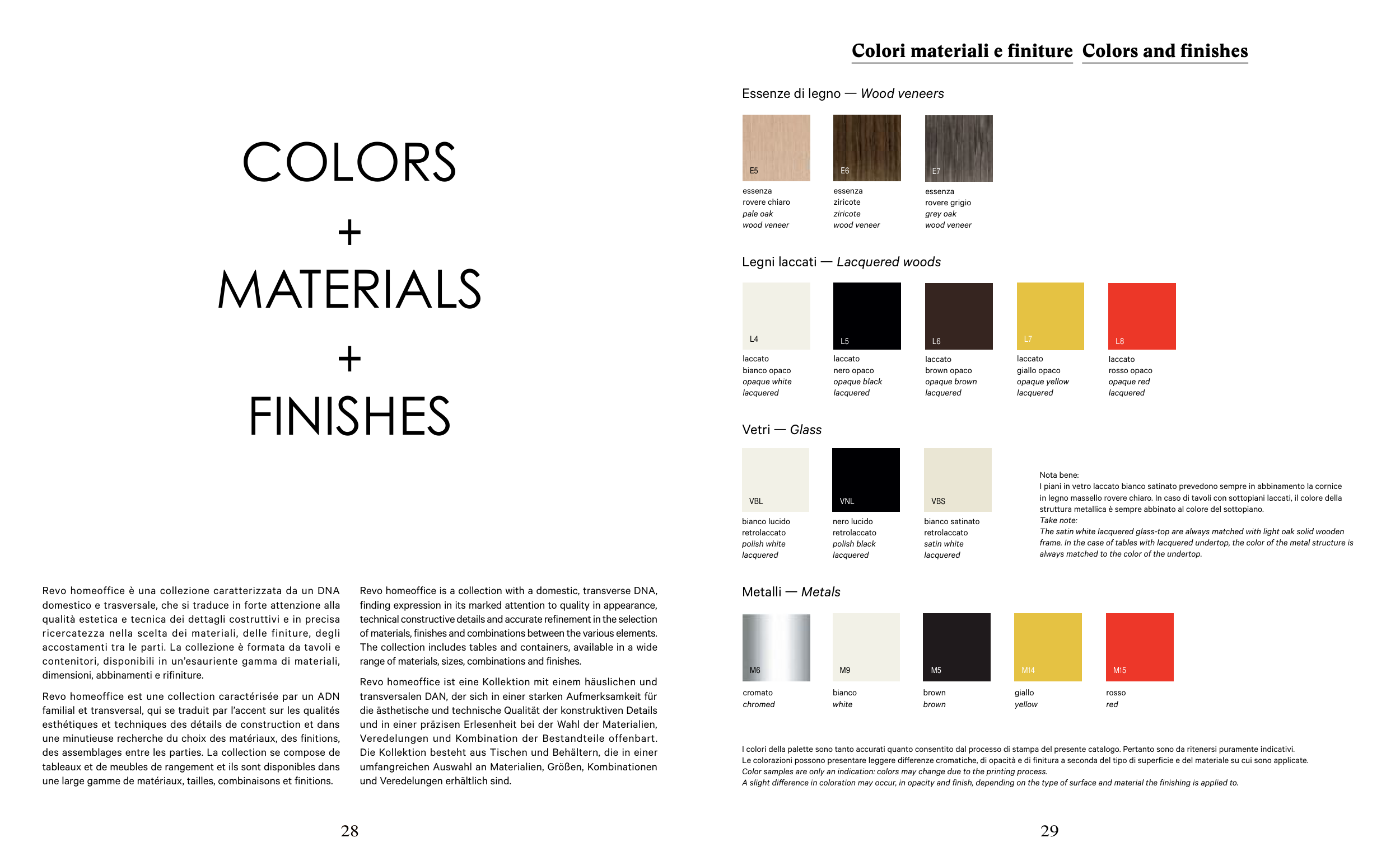 Colori materiali e finiture Colors and finishes
